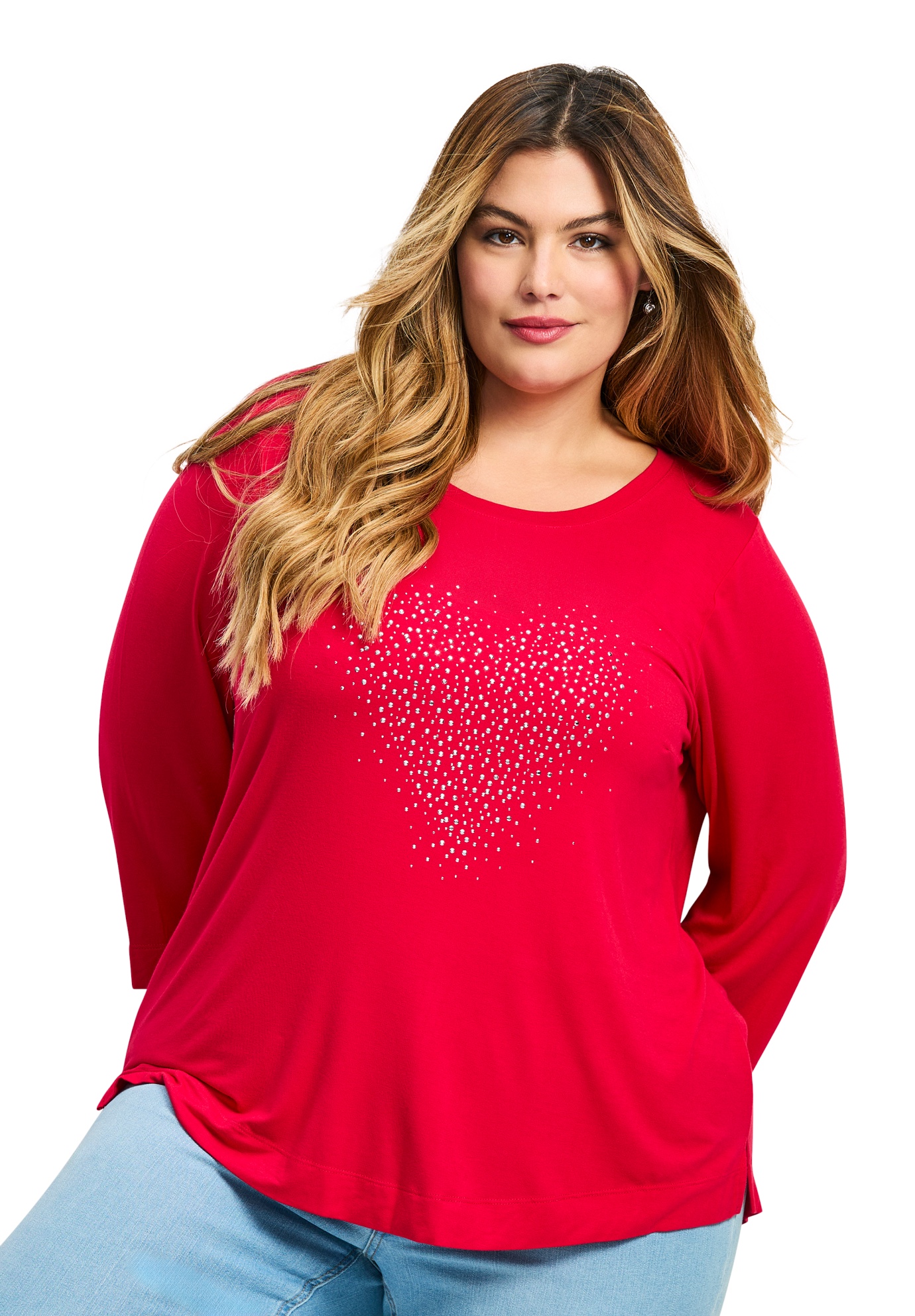 Plus Size Women's Love Heart Top by Avenue in Red (Size 14)