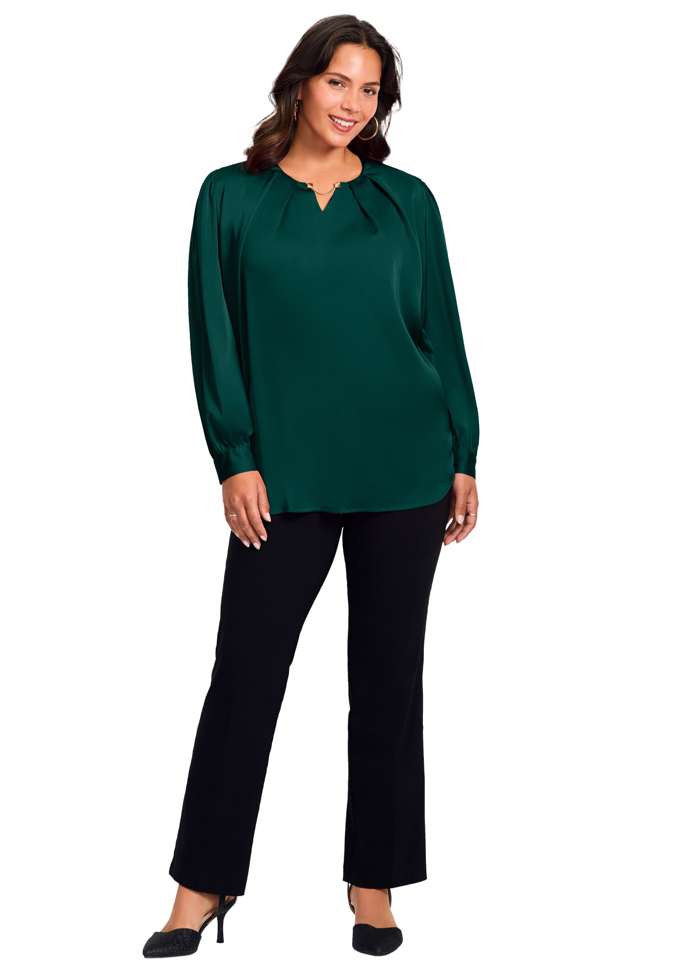 Plus Size Women's Chain Detail Satin Top by Avenue in Emerald Green (Size 26/28)