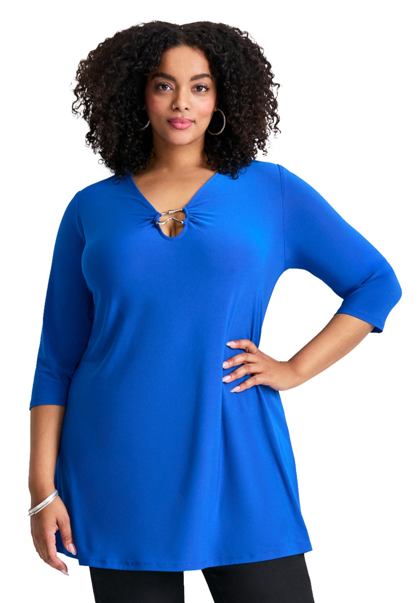 Plus Size Women's Ring Detail Tunic Top by Avenue in Ultra Blue (Size 16)
