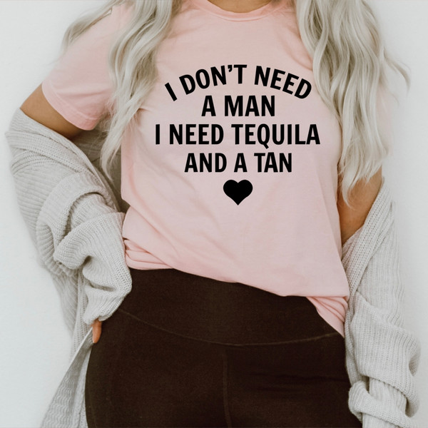 I Don't Need A Man I Need Tequila And A Tan Tee Dark Grey Heather 3XL