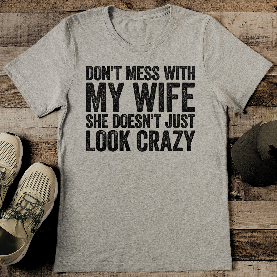 Don't Mess With My Wife She Doesn't Just Look Crazy Tee 3XL Mustard