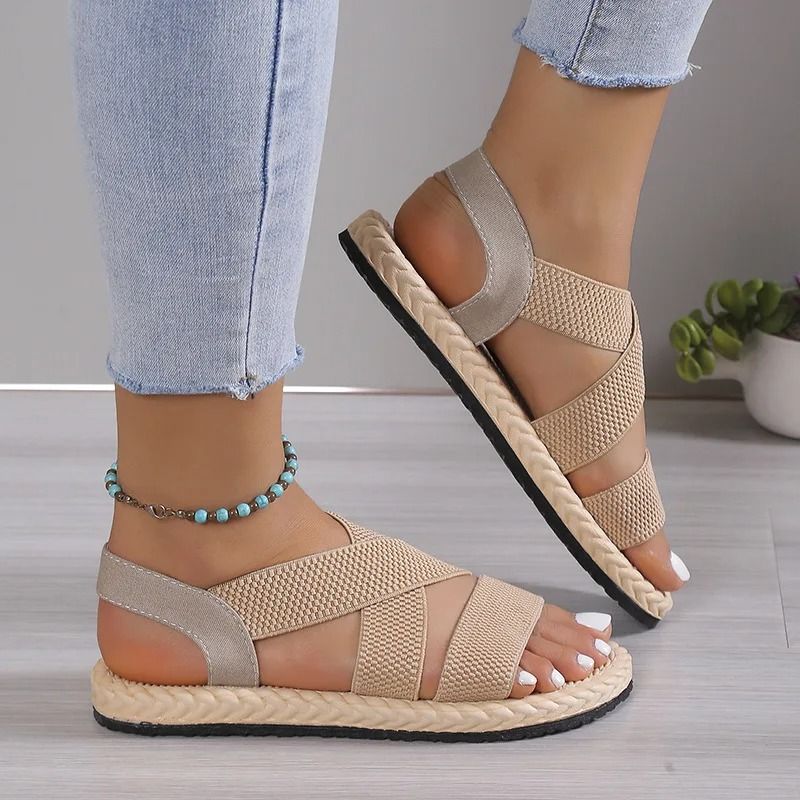 Women Open Toe Flat Sandals With Cross Strap And Adjustable Ankle Strap 6.5 black