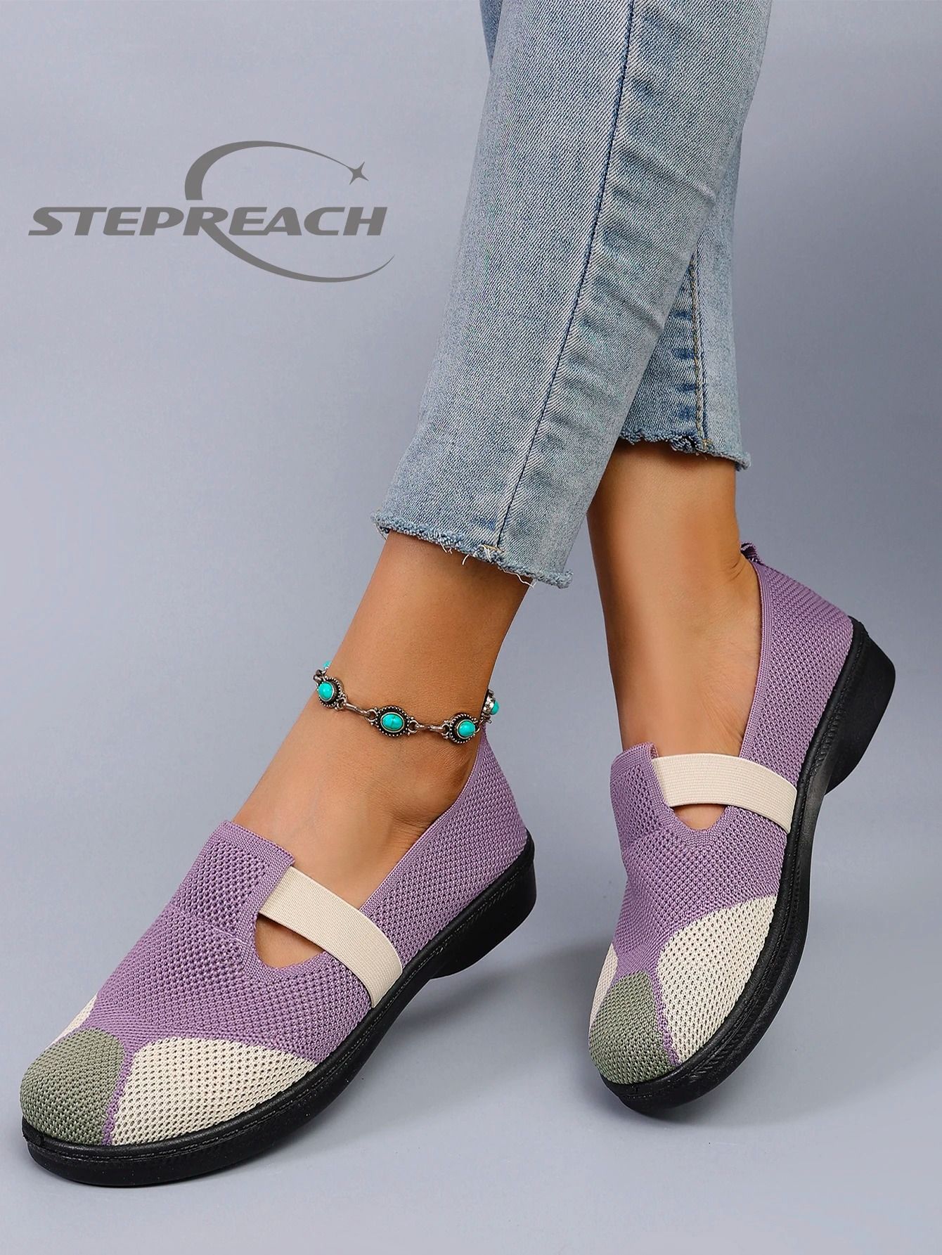 Womens Summer Breathable Mesh Flat Shoes purple 6