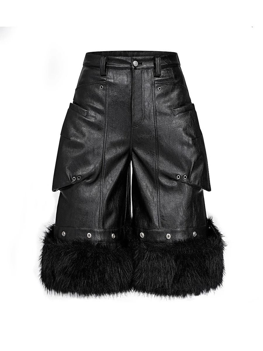 Mauroicardi Black Faux Fur Patchwork PU Leather Shorts For Men With 3D Pockets Luxury Emo Streetwear Style m