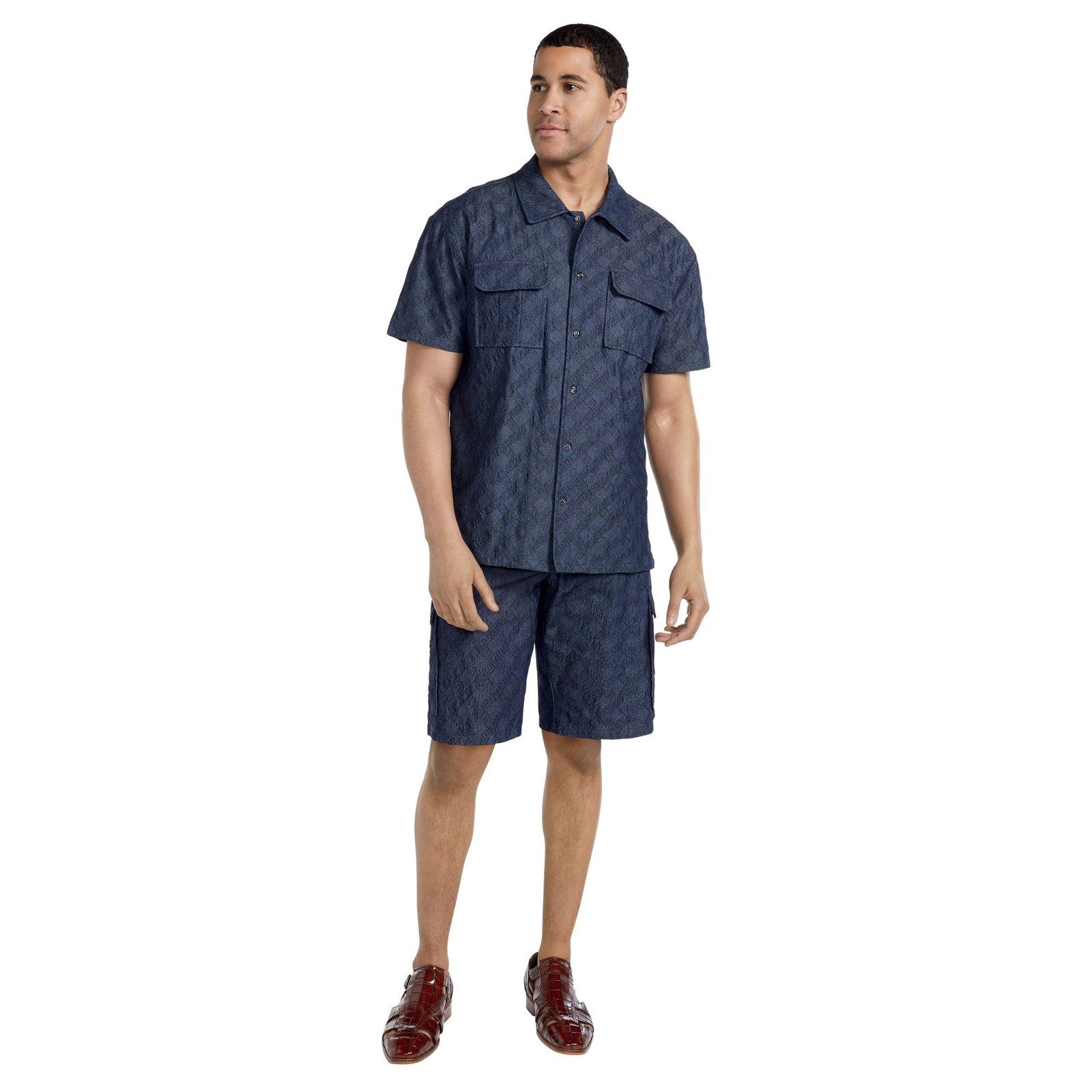 Stacy Adams Men's Denim Jacquard Short Set (Size M) Denim Blue, Cotton,Denim,Spandex