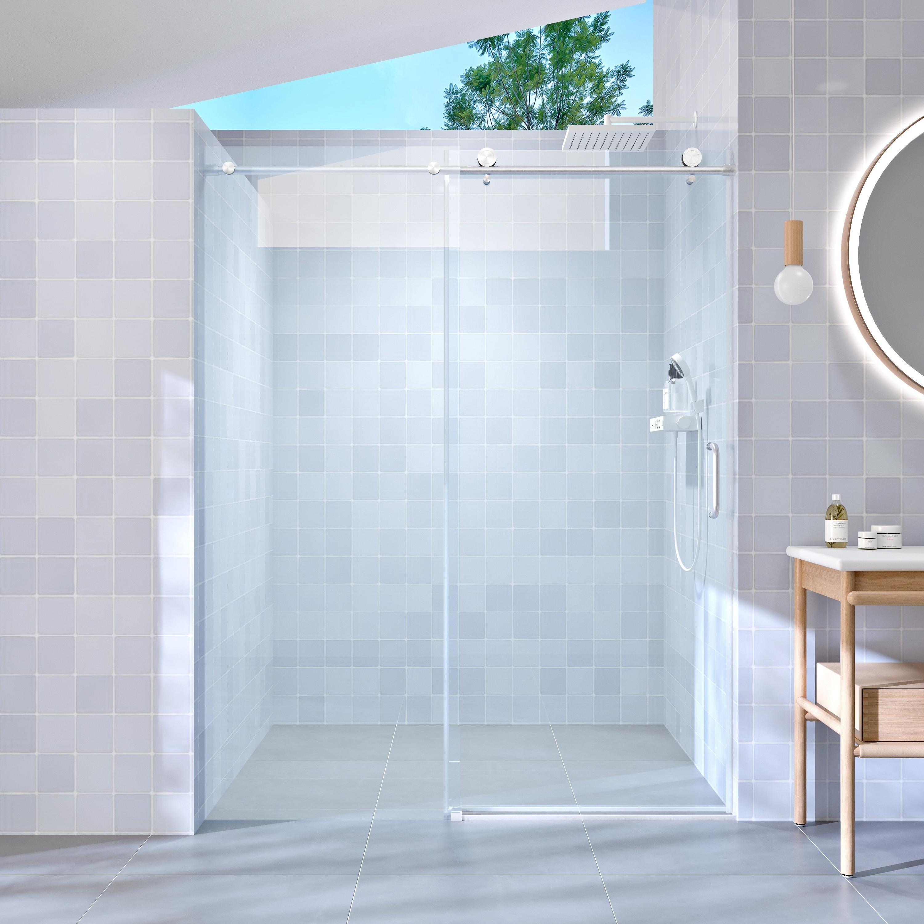 60" W x 76" H Frameless Single Sliding Shower Door, 1/4" (6mm) Tempered Easy-Clean Glass, Anti-Shatter, 3 Color Options