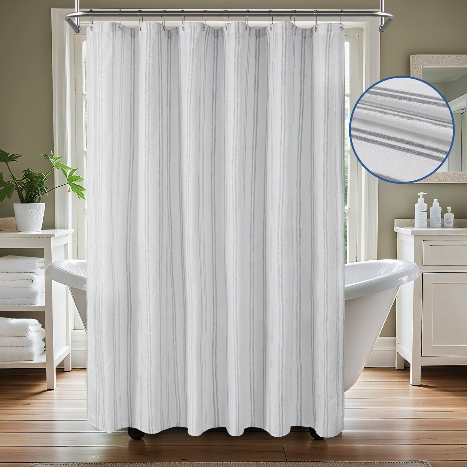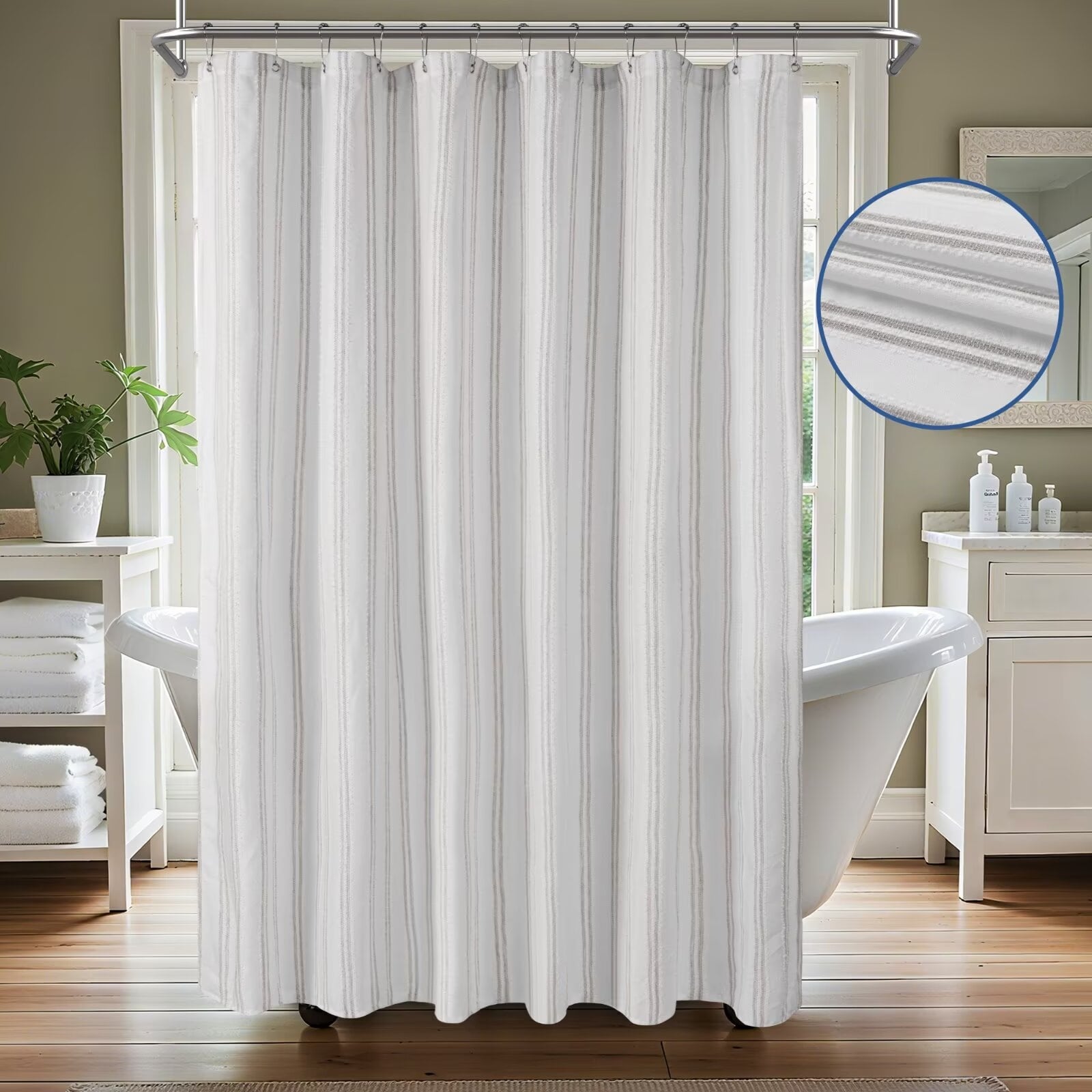 No Hook Slub Linen Texture Shower Curtain with PEVA Snap-in Liner