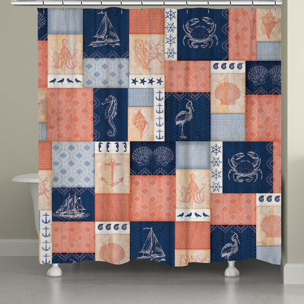 Laural Home Navy and Coral Coastal Patchwork 71 x 72-inch Shower Curtain