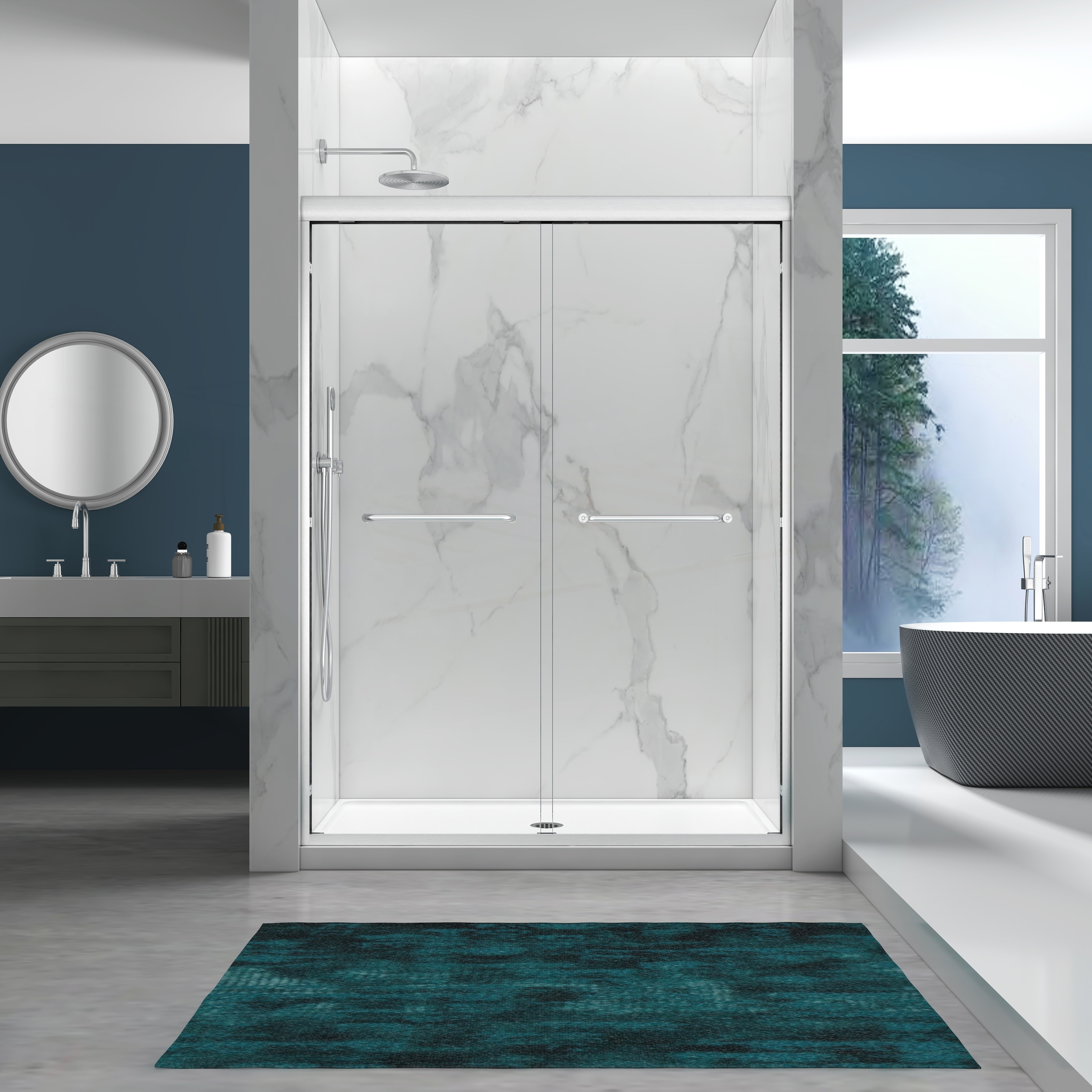 55-61" W x 76" H North American Frameless Double Sliding Matte Black Shower Door
