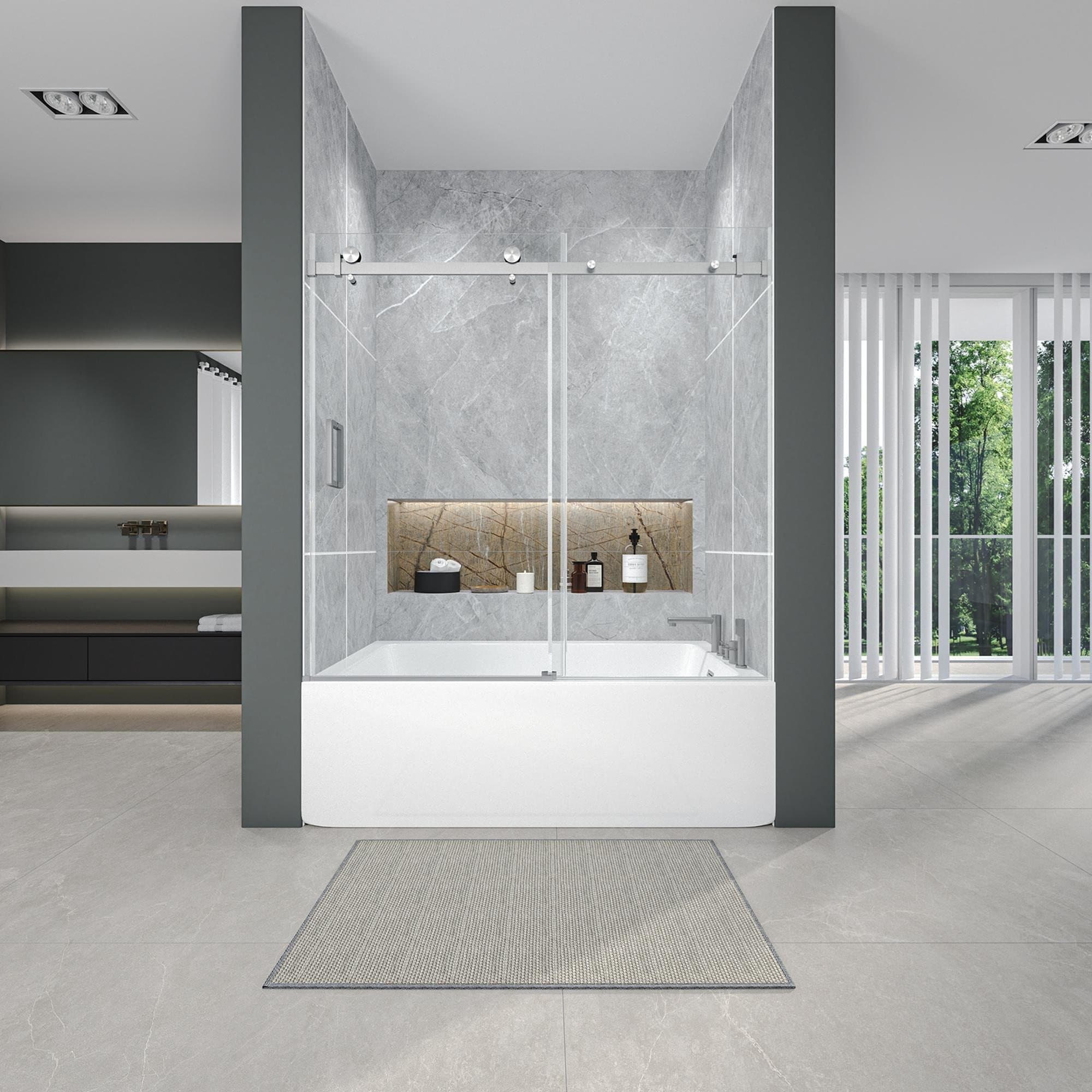 Seawin Runway 56 - 60 x 77 in. Frameless Sliding Shower Door 3/8 in. (10 mm) Clear Glass with NanoShield Coating LED Rollers