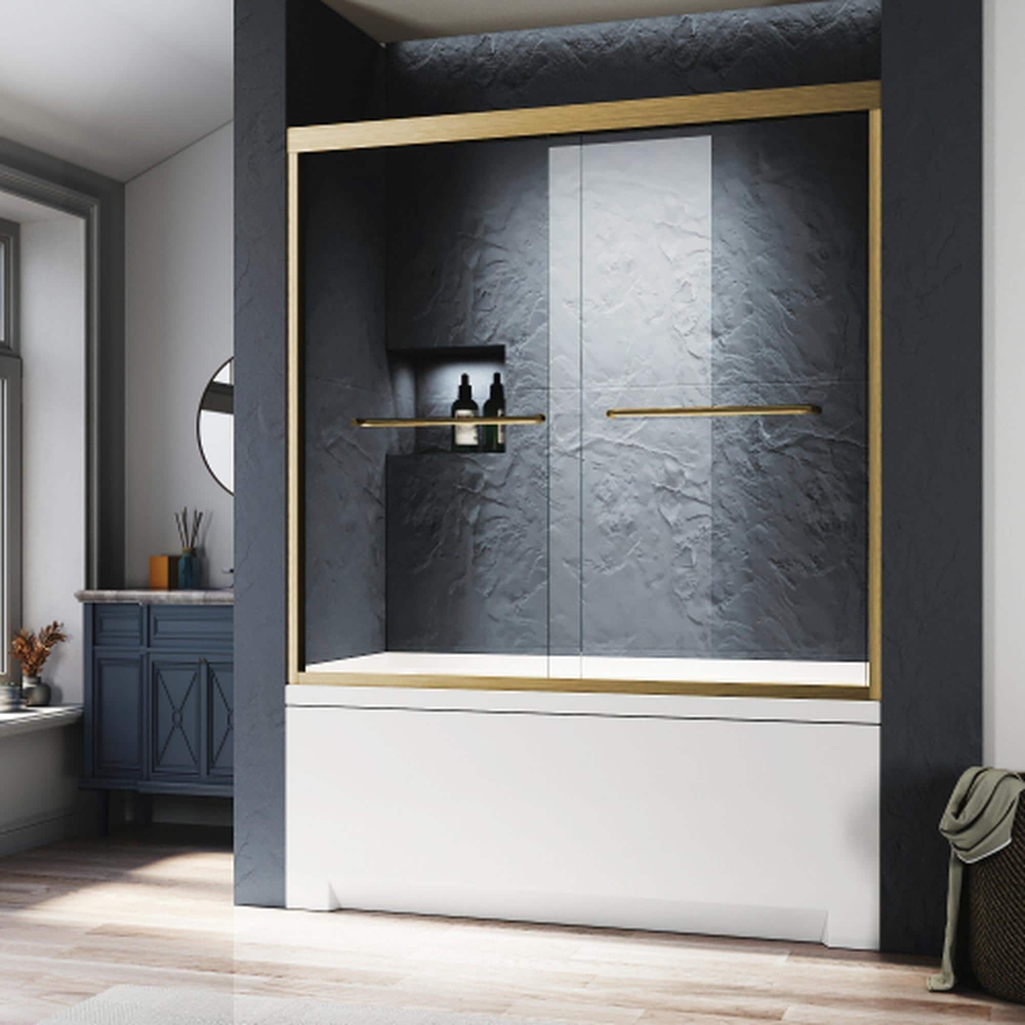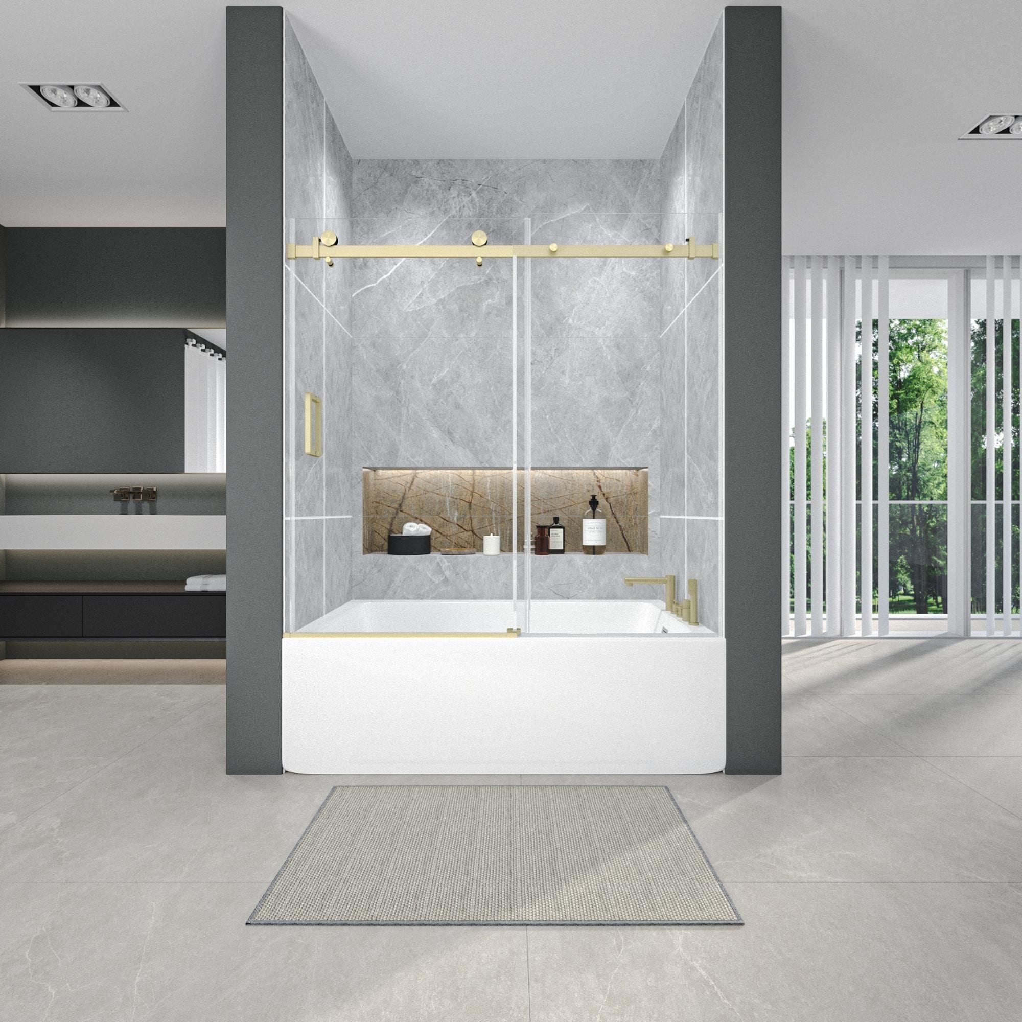Brushed Gold Semi-Frameless Double Bathtub Door