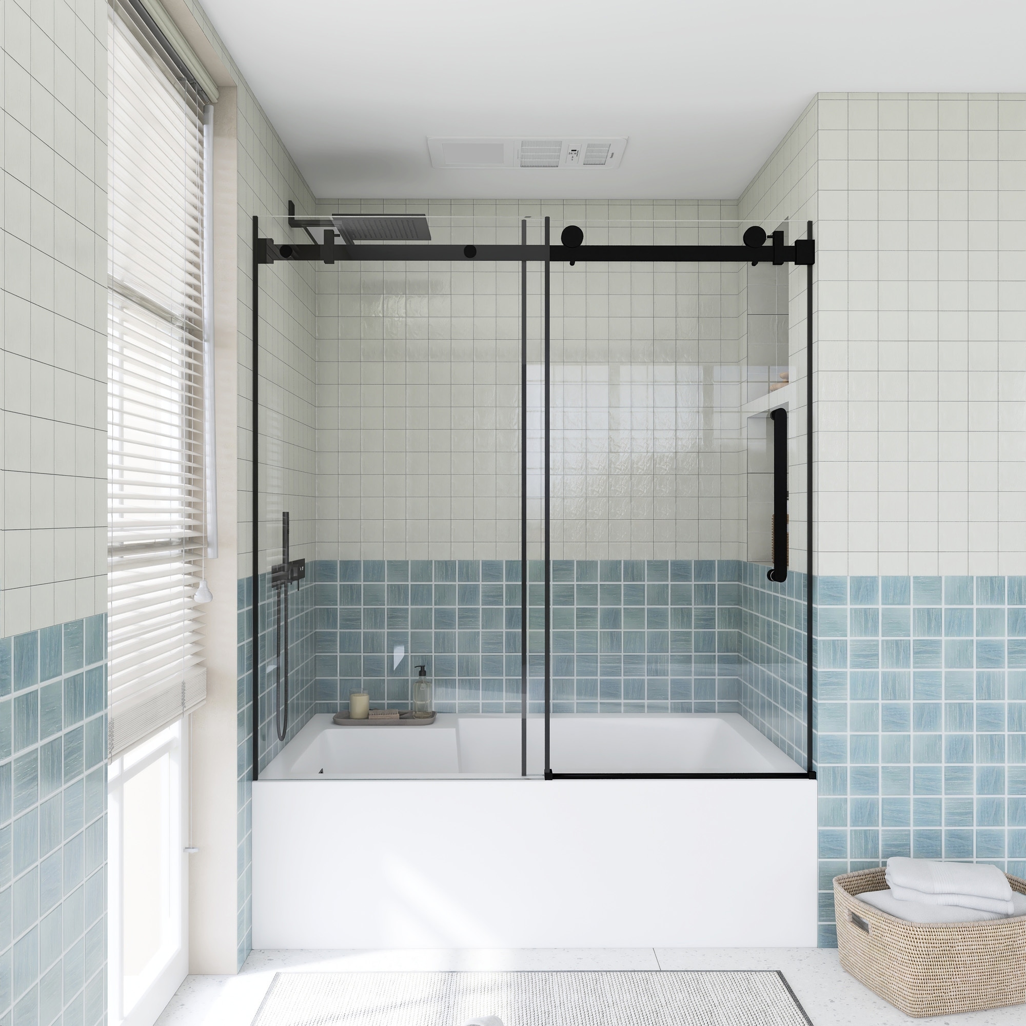 Glass Warehouse 52 in. - 56 in. x 60in. Frameless Bath Tub Sliding Shower Door with Square Hardware