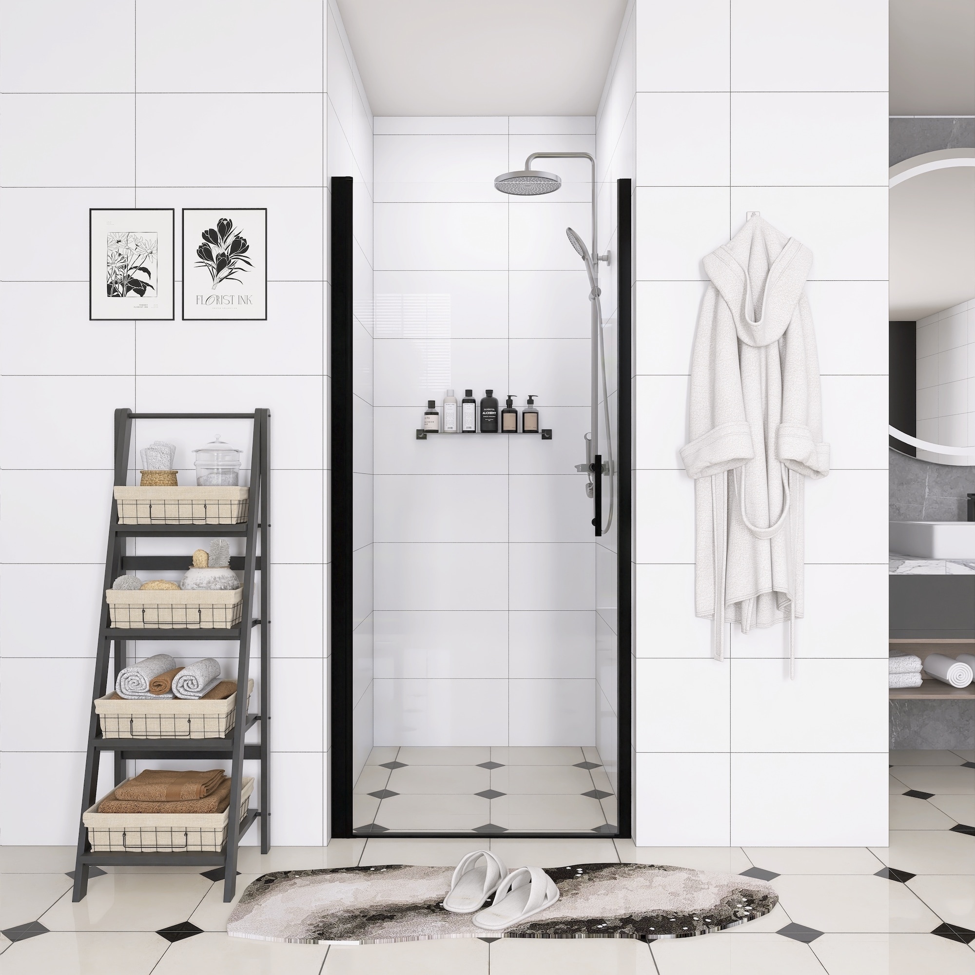 Framed Pivot Shower Door in Matte Black with Stainless Steel Handle