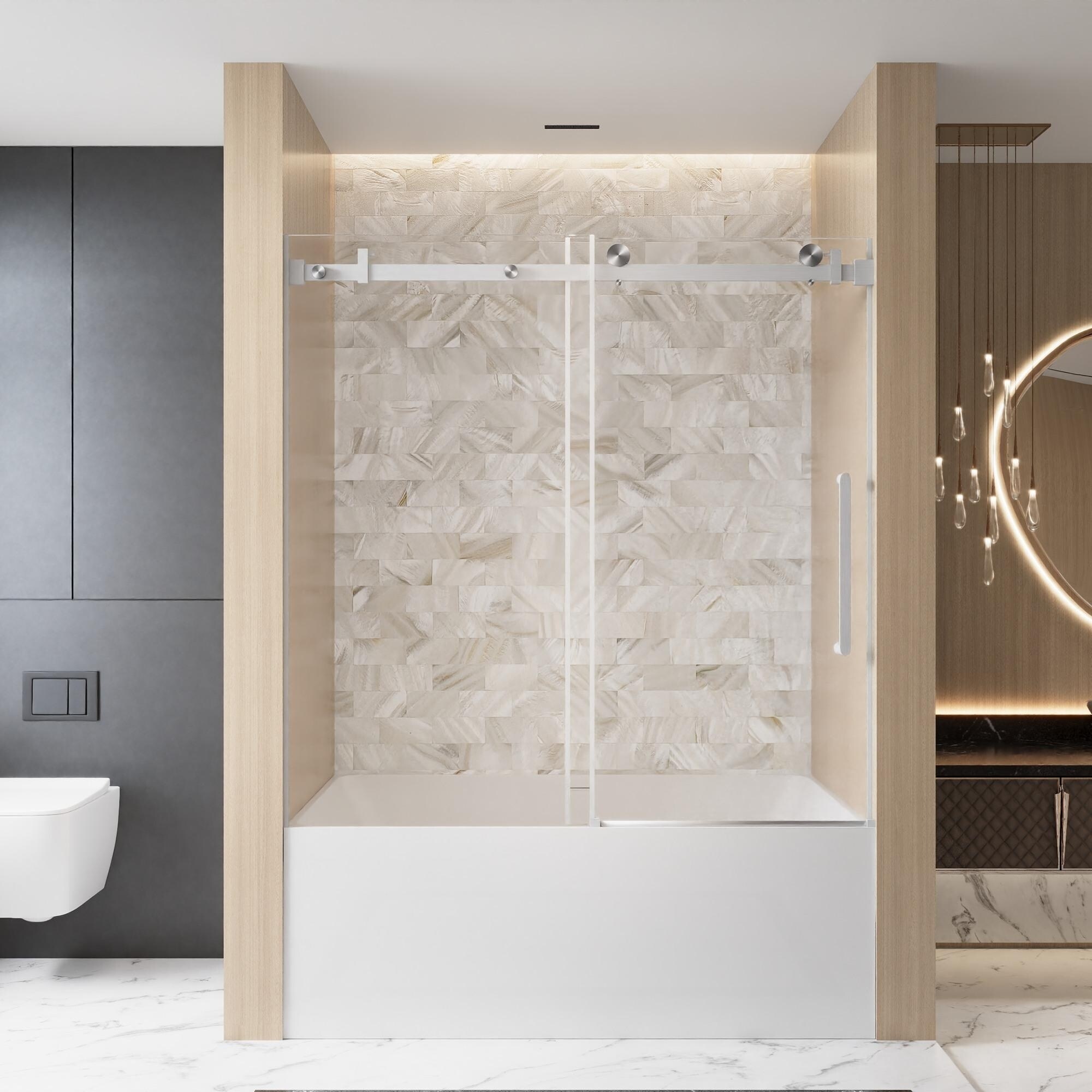 Seawin Briza 56 - 60 x 62 inches Frameless Sliding Bathtub Door 3/8 in. (10 mm) Clear Tempered Glass with NanoShield Coating