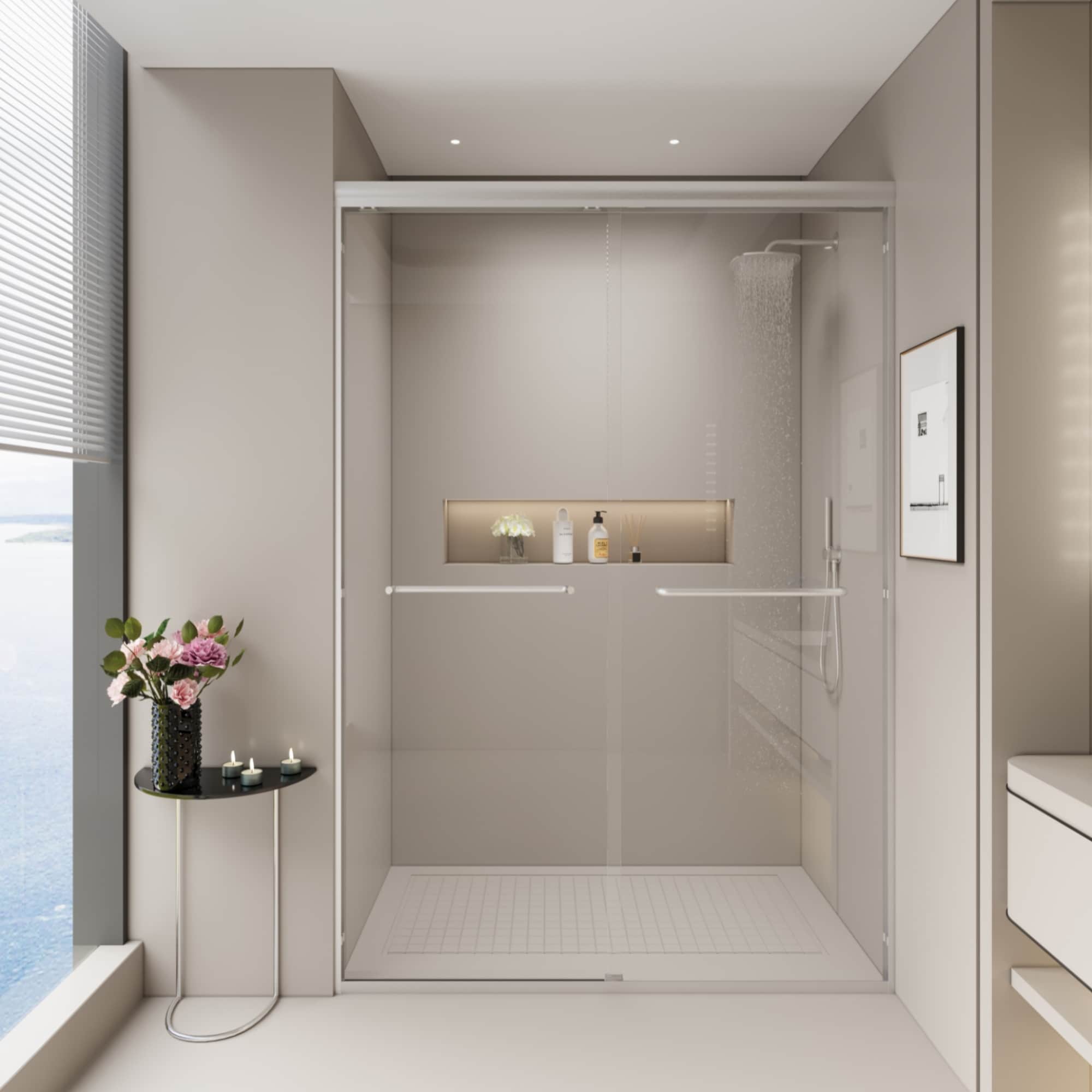 Semi-Frameless Double Sliding Shower Door with Tempered Glass
