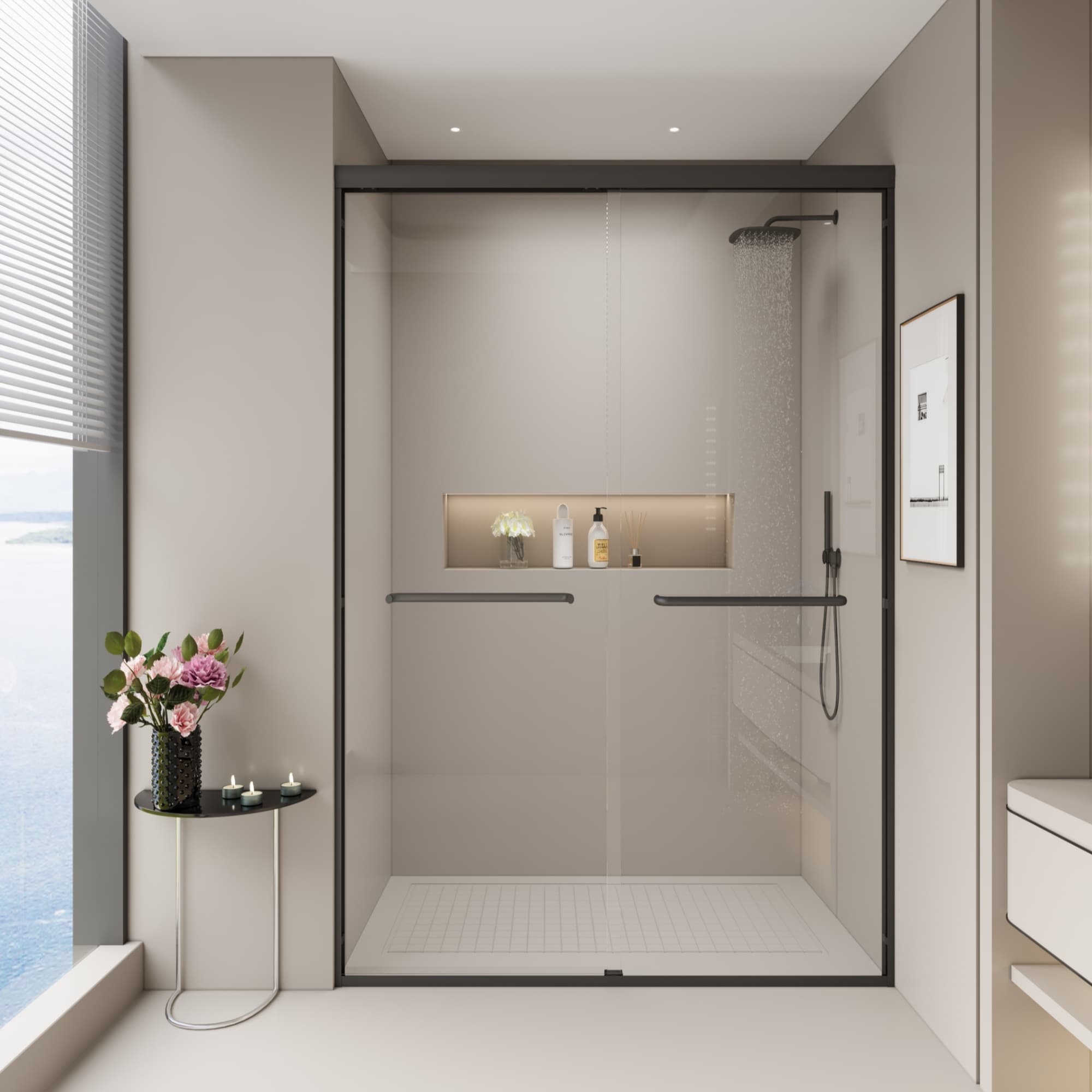 56″-60″ W × 72″ H Frameless Single Sliding Shower Door - Clear Tempered Glass - 60" W × 72" H