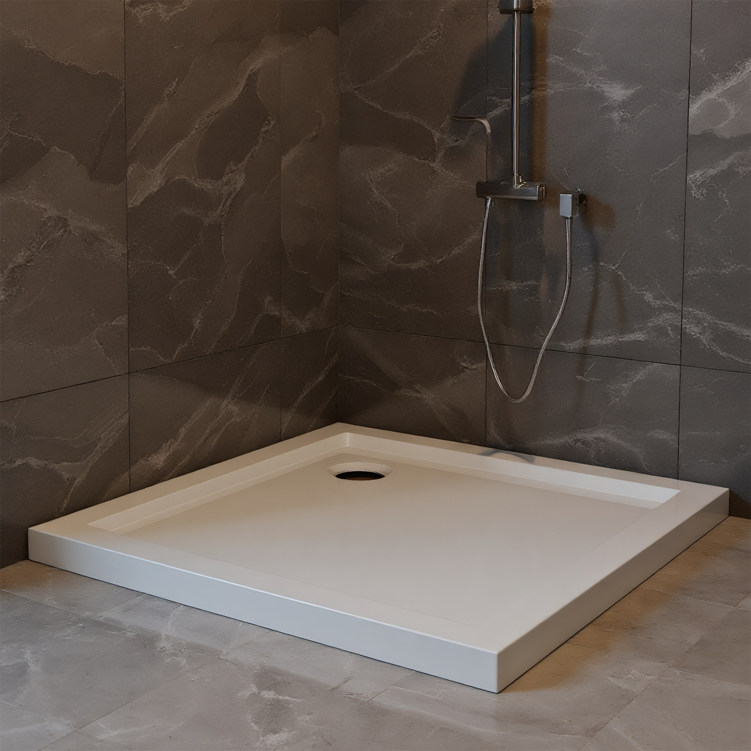 32" Square Shower Base with Corner Drain, Non-Slip 5-Layer ABS/Acrylic