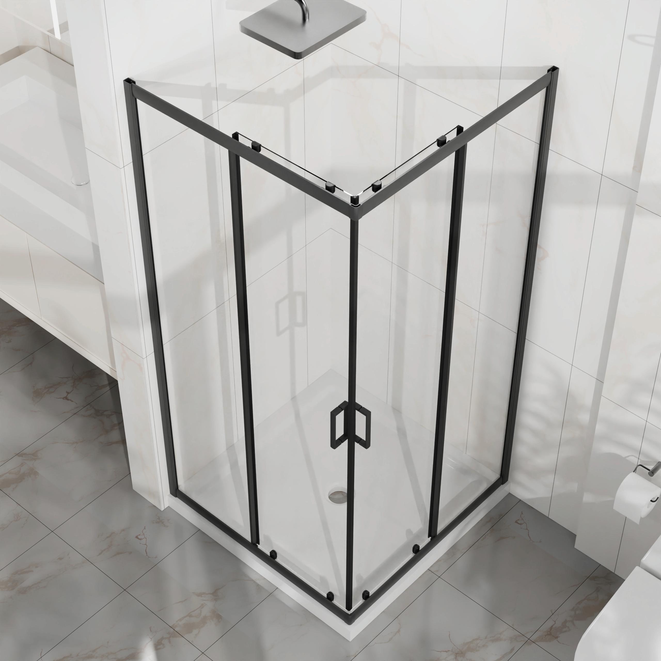 36x36 Corner Sliding Shower Enclosure - Black Frame