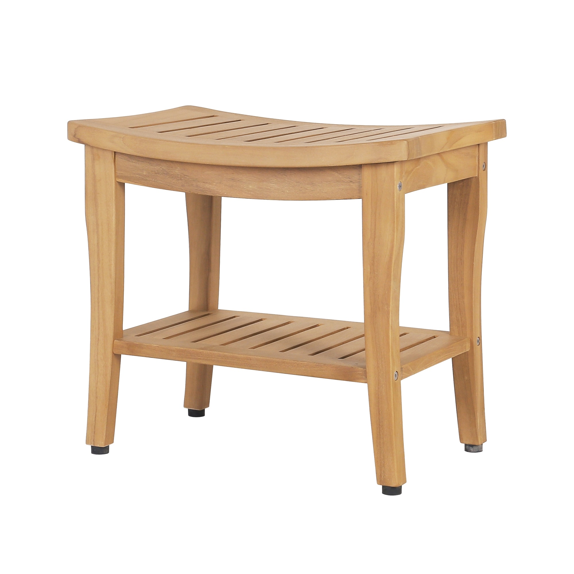 Waterproof Teak Shower Bench with Shelf & Non-Slip Feet - Teak wood