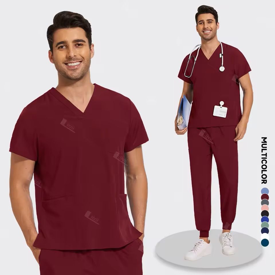 Lightweight Anti Wrinkle Nursing Scrub Set For Men And Women m burgundy