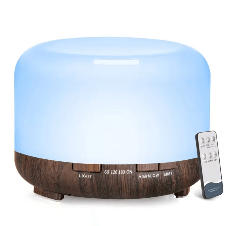 500ml Ultrasonic Essential Oil Diffuser With Remote Control And LED Light For Home Or Office black Wood Grain