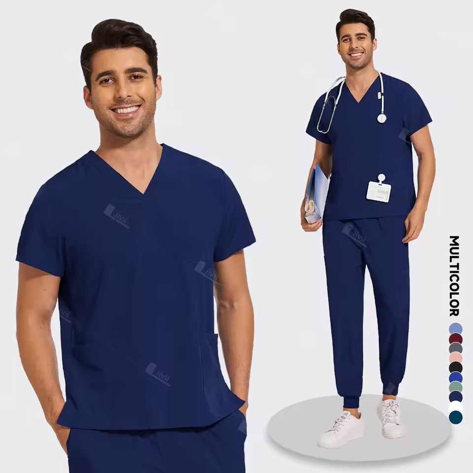 Lightweight Anti Wrinkle Nursing Scrub Set For Men And Women s navy Blue
