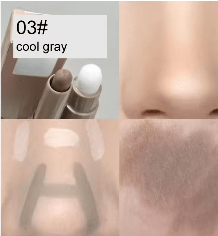 Double Ended Contour And Highlight Stick Waterproof Cream Makeup For Sculpted, Radiant Skin 03 Cool Gray
