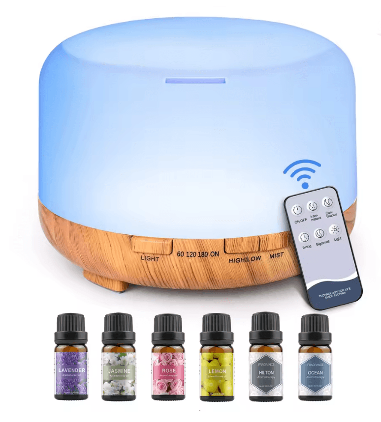 500ml Ultrasonic Essential Oil Diffuser With Remote Control And LED Light For Home Or Office yellow Wood Oils