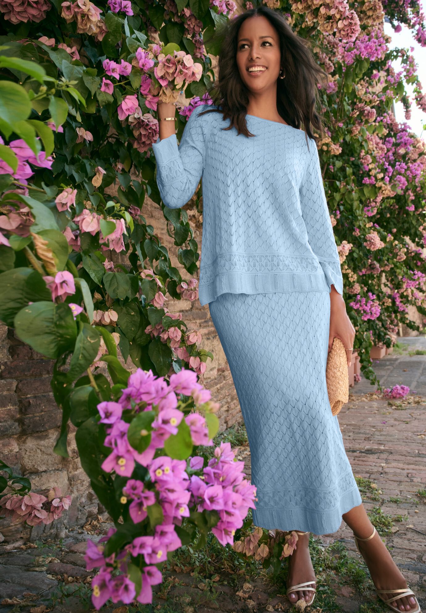 Plus Size Women's Pointelle Skirt by Roaman's in Pale Blue (Size 18/20)