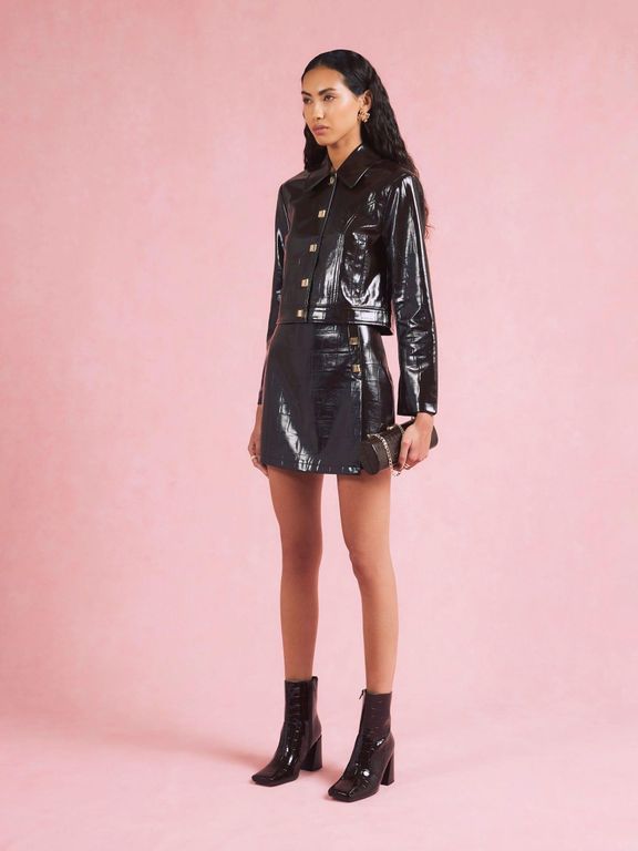 Faux Leather Button Detail Asymmetric Mini Skirt - Pink - River Island Skirts