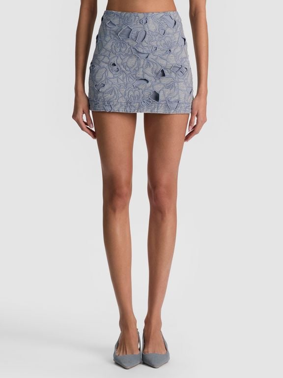 Rubi Laser-Cut Denim Skirt - Blue - Alice + Olivia Skirts