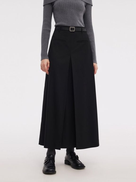 H-Line Pleated Skirt With Belt - Black - GOELIA Skirts