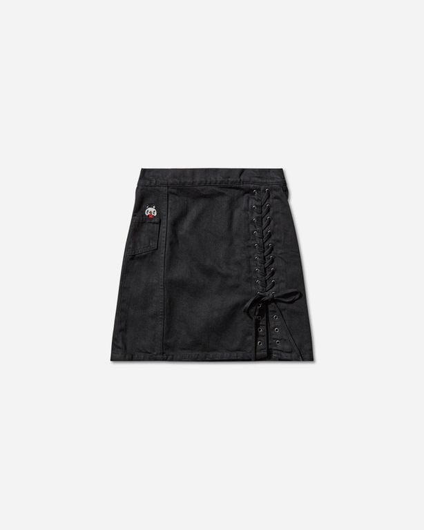 Women S Apple Panda Embroidered Side Lace-up Denim Mini Skirt Black - Black - Hysteric Glamour Skirts