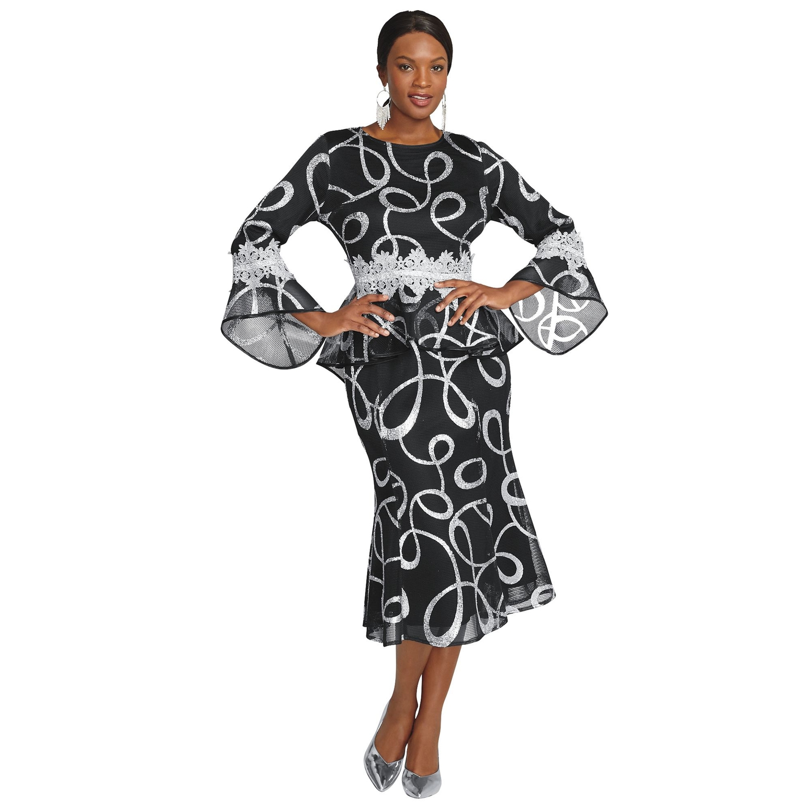 Masseys Mesh Skirt Suit (Size 8) Black/Silver, Polyester