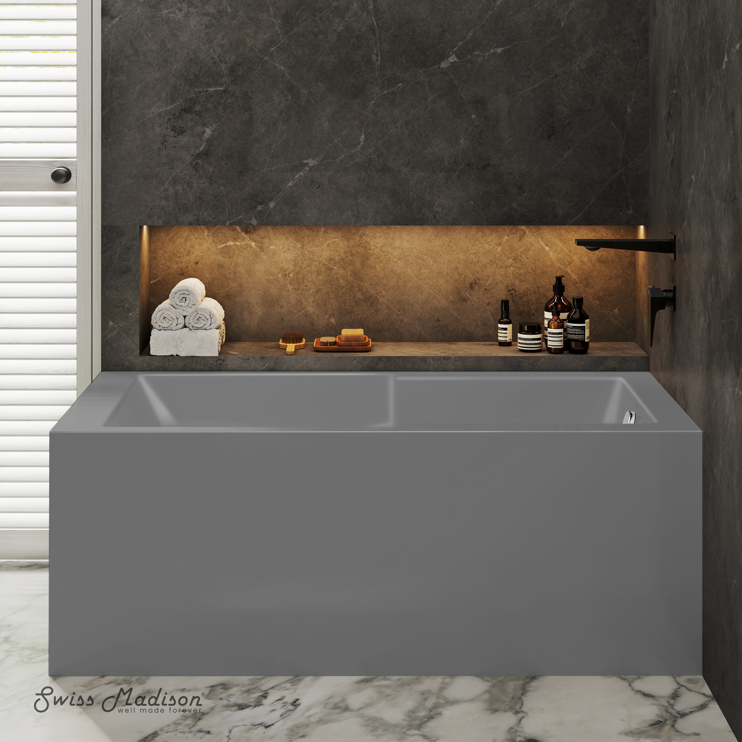 Claire 60 X 32 Right Drain Soaking Alcove Corner Apron Bathtub In Matte Gray