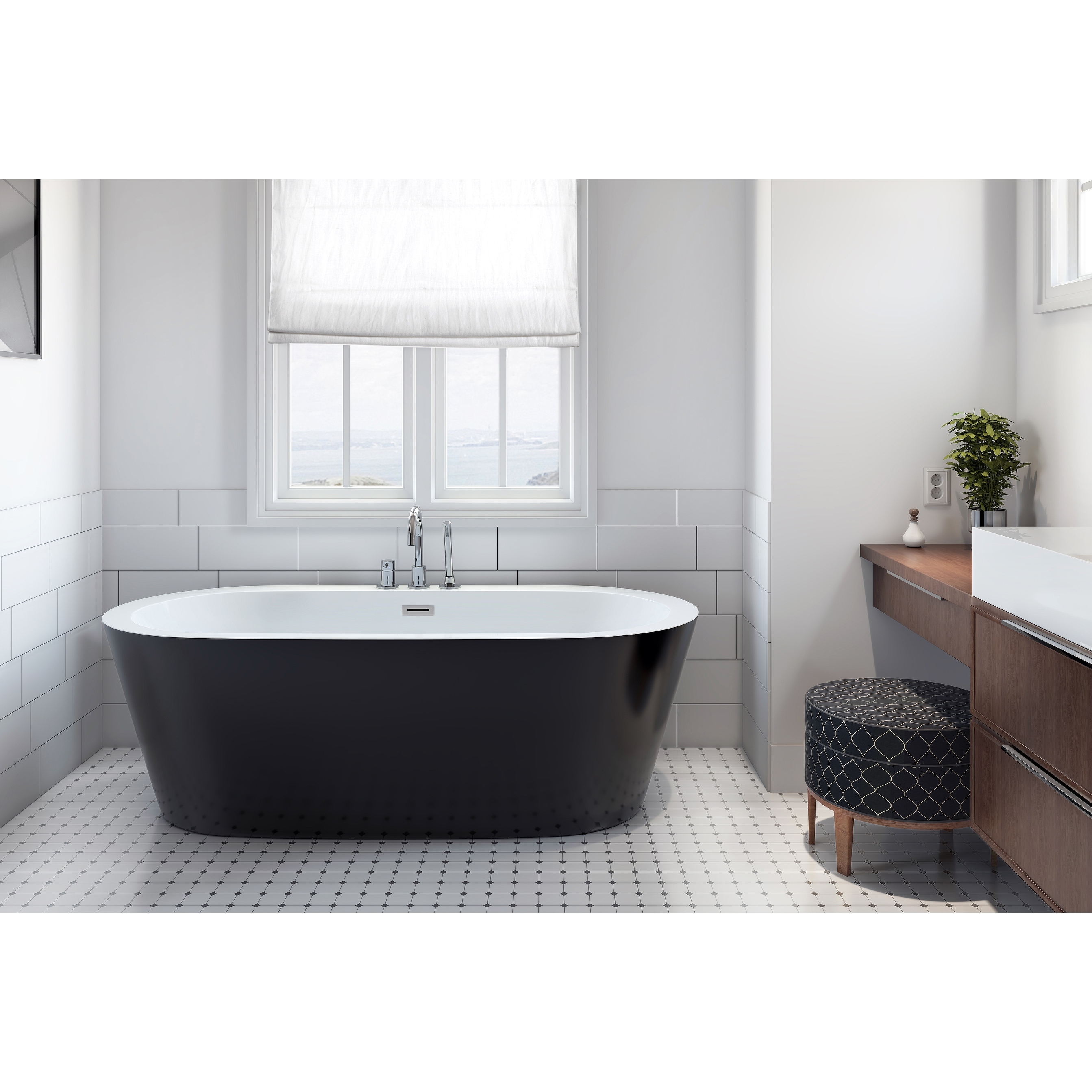 Tampa 67" Freestanding White Acrylic Bathtub in Black Matte