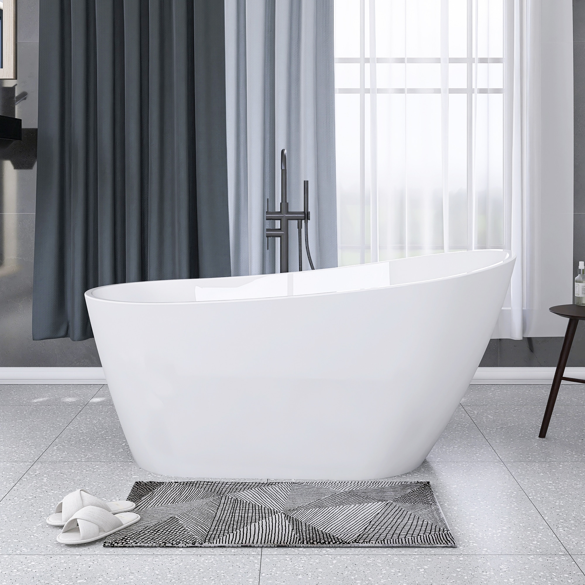59.06 in. x 29.53 in. Acrylic Freestanding Soaking Bathtub in Gloss white