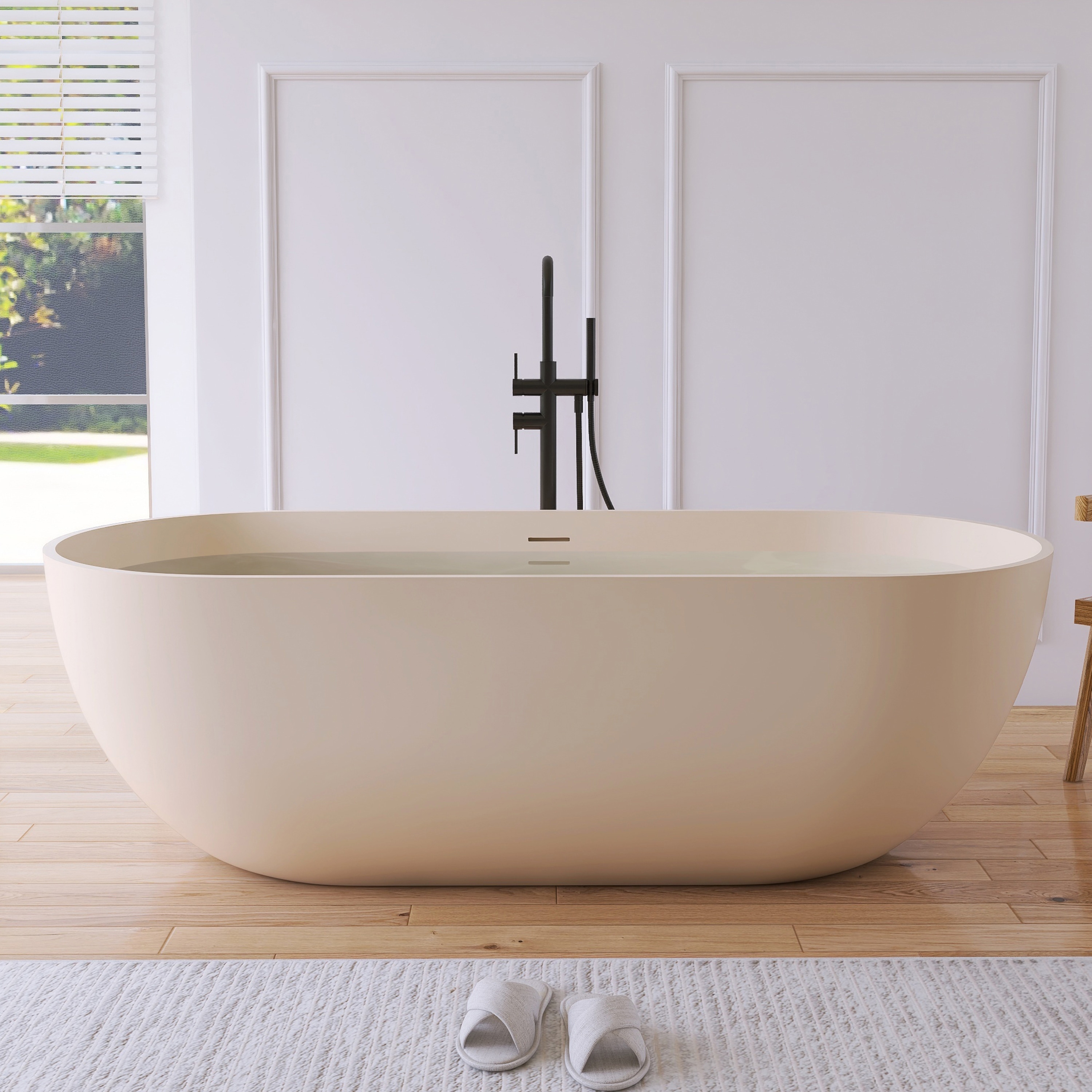 MEDUNJESS 62'' Freestanding Bathtub Solid Surface Soaking Tub