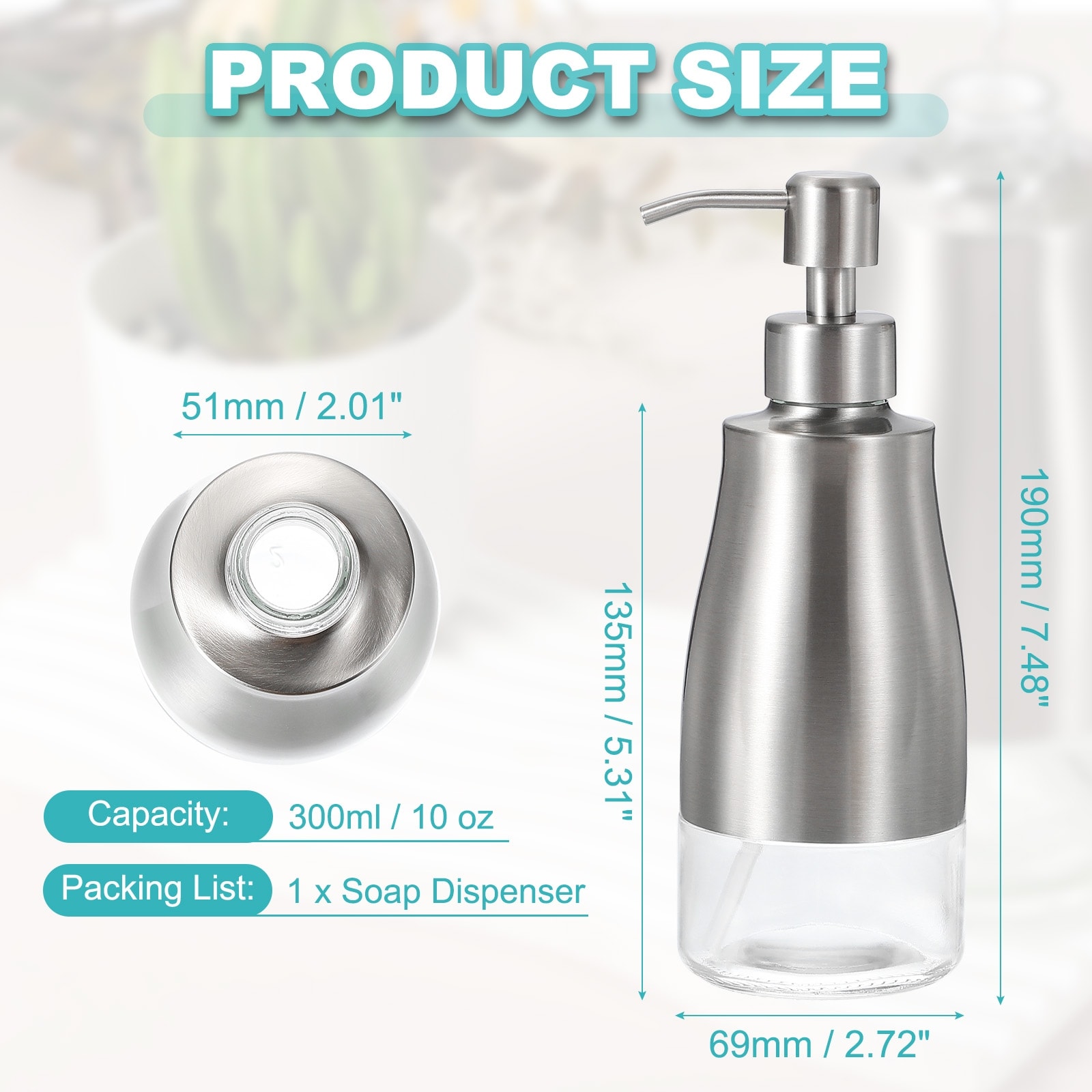 Dish Soap Dispenser, Stainless Steel Case Glass Liner Refillable Liquid Hand Pump Bottle for Bathroom Kitchen - Silver