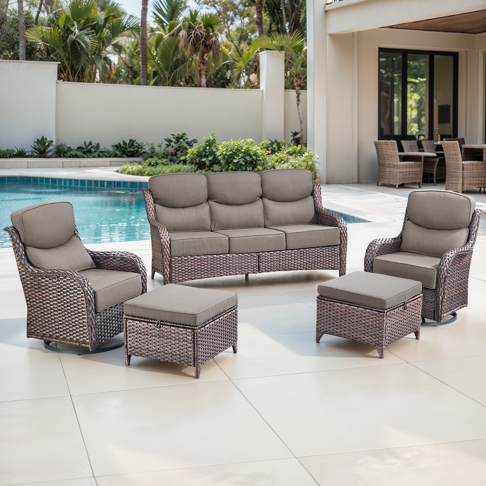 Gymojoy 5-Piece Patio Furniture Set with Swivel Glider Chairs, 6-Inch Ultra-Plush Cushions & Water-Resistant Olefin Fabric