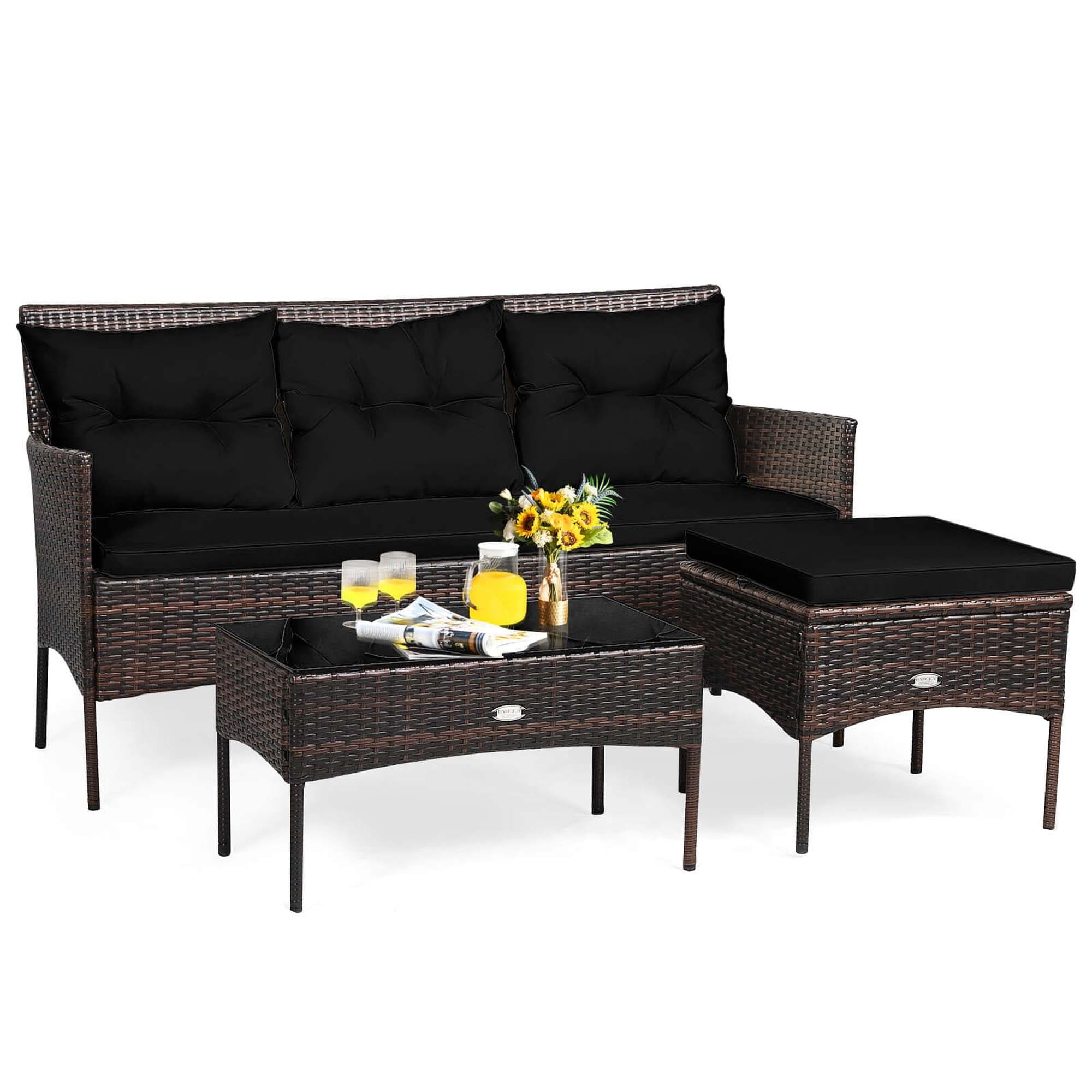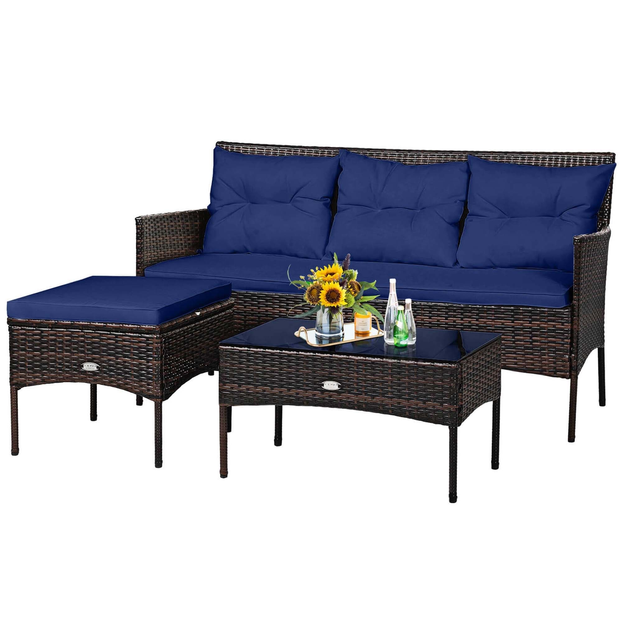 3 PCS Patio Rattan Sofa Set Outdoor Conversation Set w/ Cushions