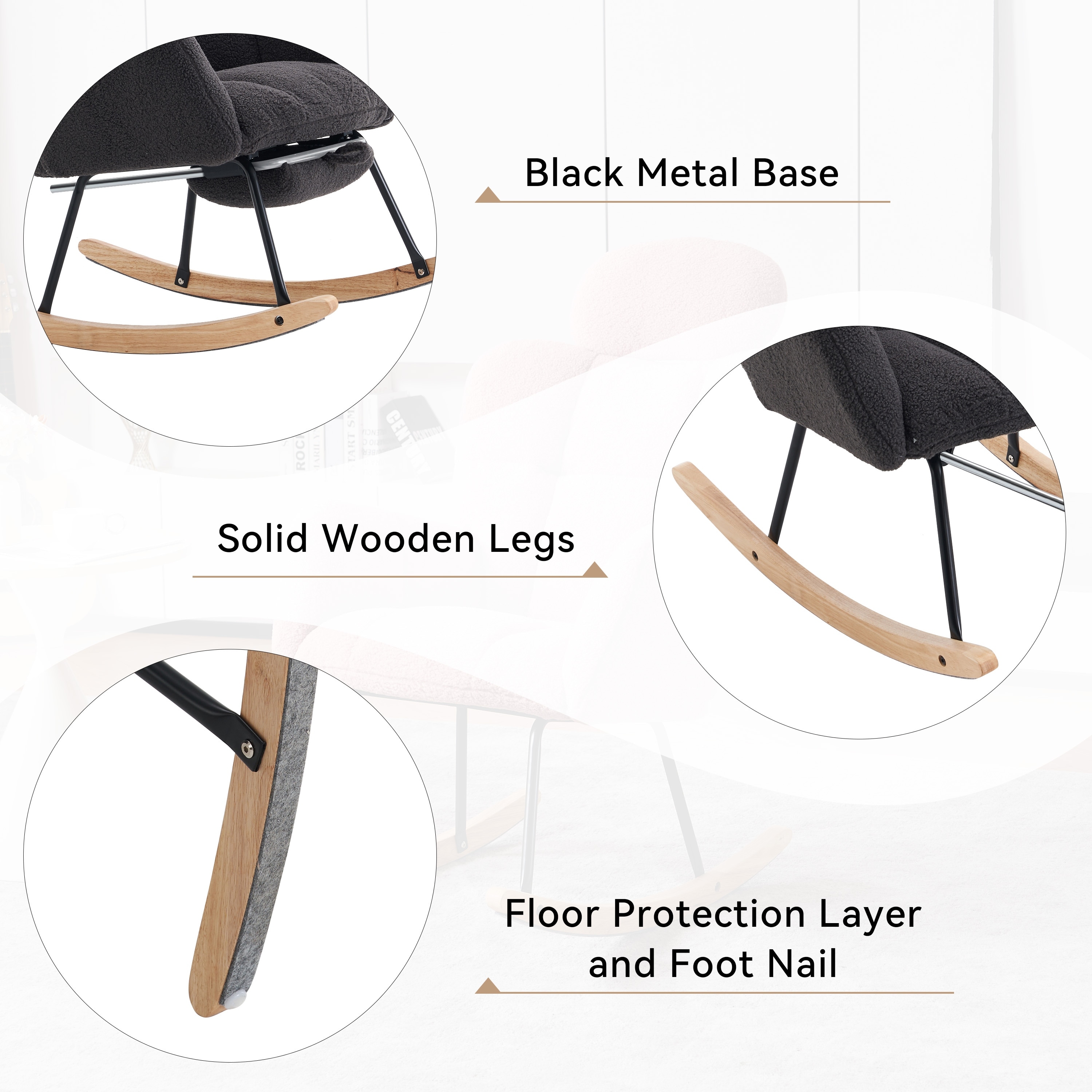 Teddy Fabric Upholstered Nursery Rocking Chair with Pillow & Footrest Modern Accent Armchair Padded Seat
