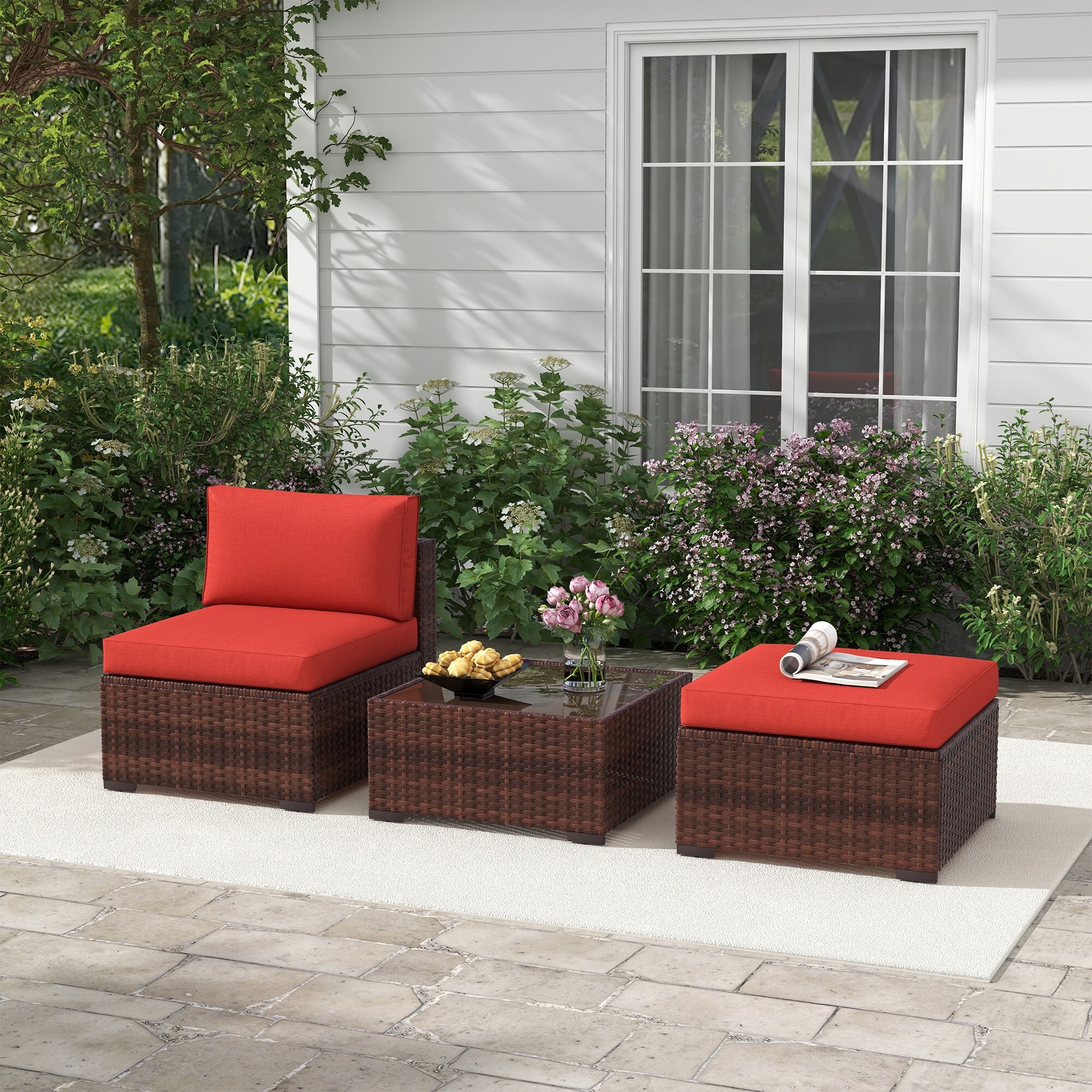 Outdoor 3-Piece Wicker Sofa Set with Ottoman
