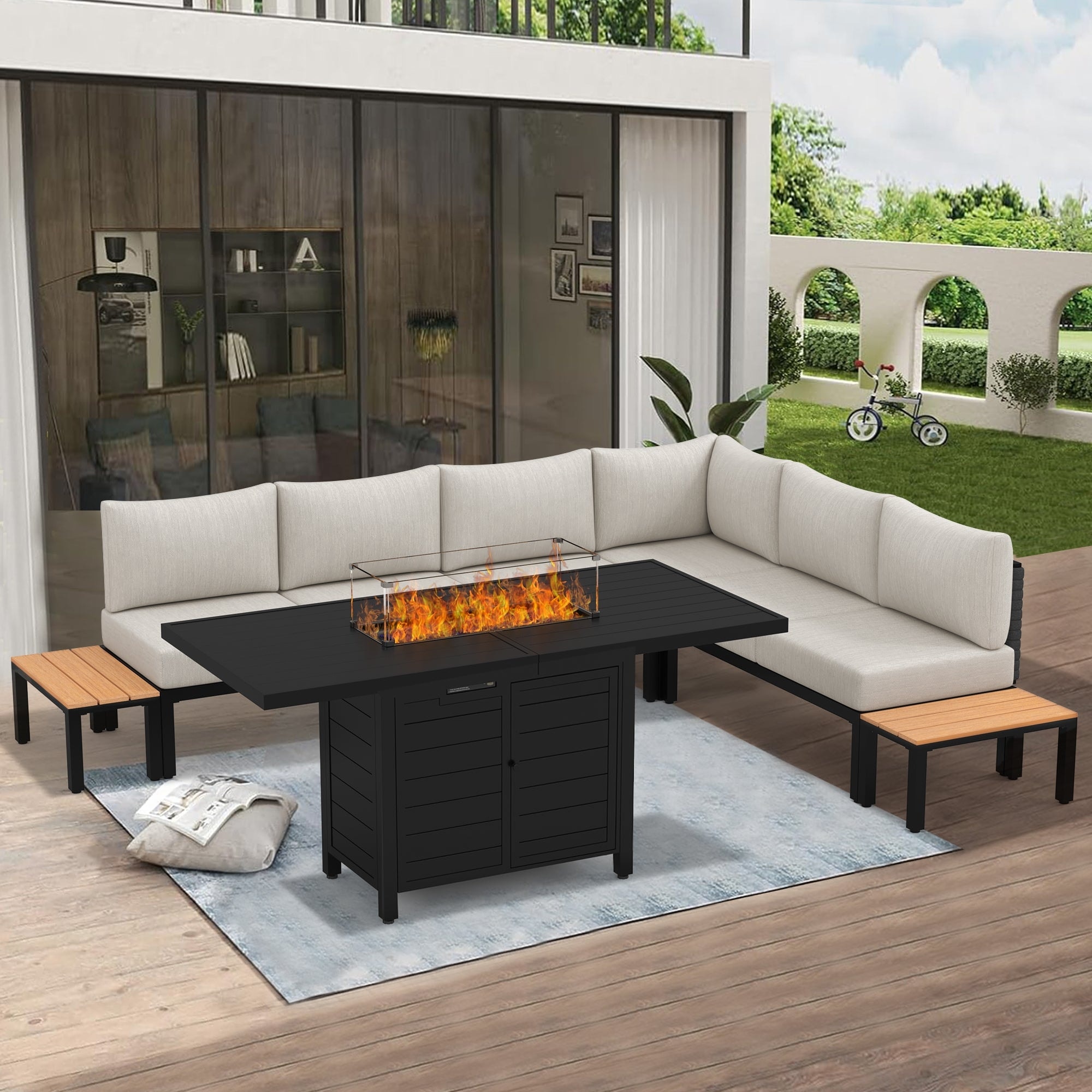 9 Pieces Outdoor Patio Furniture Set with Aluminum Fire Pit Table, Patio Fire Pit Set with 6" Thick Cushions - 9-Piece
