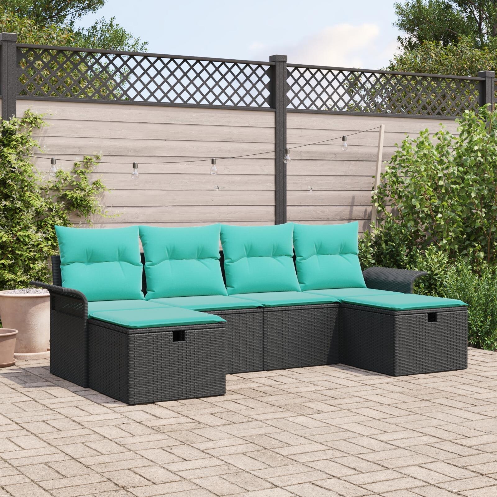 vidaXL 6 Piece Garden Sofa Set with Cushions Black Poly Rattan - 98.8 x 46.1 x 27.2