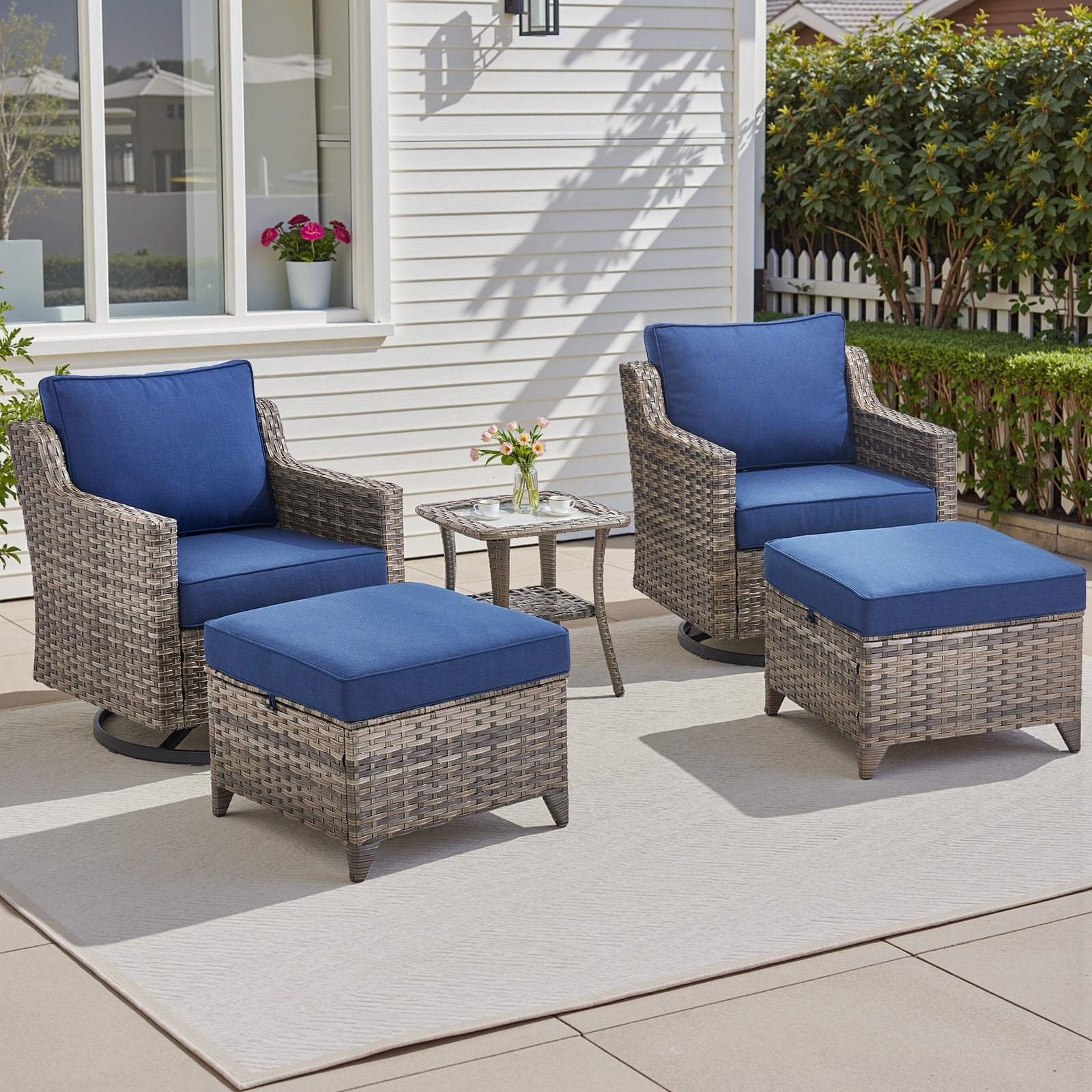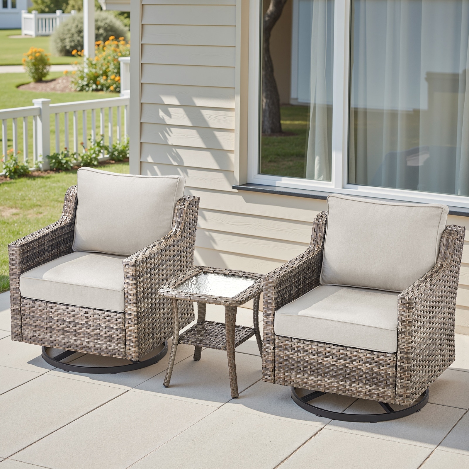 Pocassy Wicker Patio Glider Swivel Chair Ottoman Furniture Set.