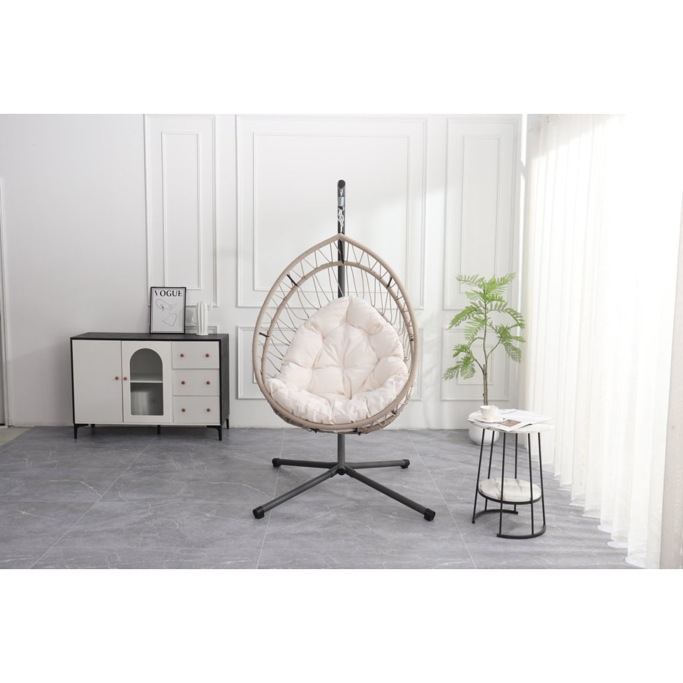 Outdoor Egg-Shaped Hanging Chair w/ Stand, Patio Egg-Shaped Swing Chair, Indoor Rocking Chair, Outdoor Hammock Egg-Shaped Chair