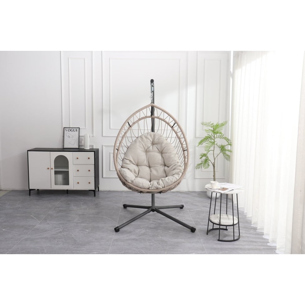 Outdoor Egg-Shaped Hanging Chair w/ Stand, Patio Egg-Shaped Swing Chair, Indoor Rocking Chair, Outdoor Hammock Egg-Shaped Chair