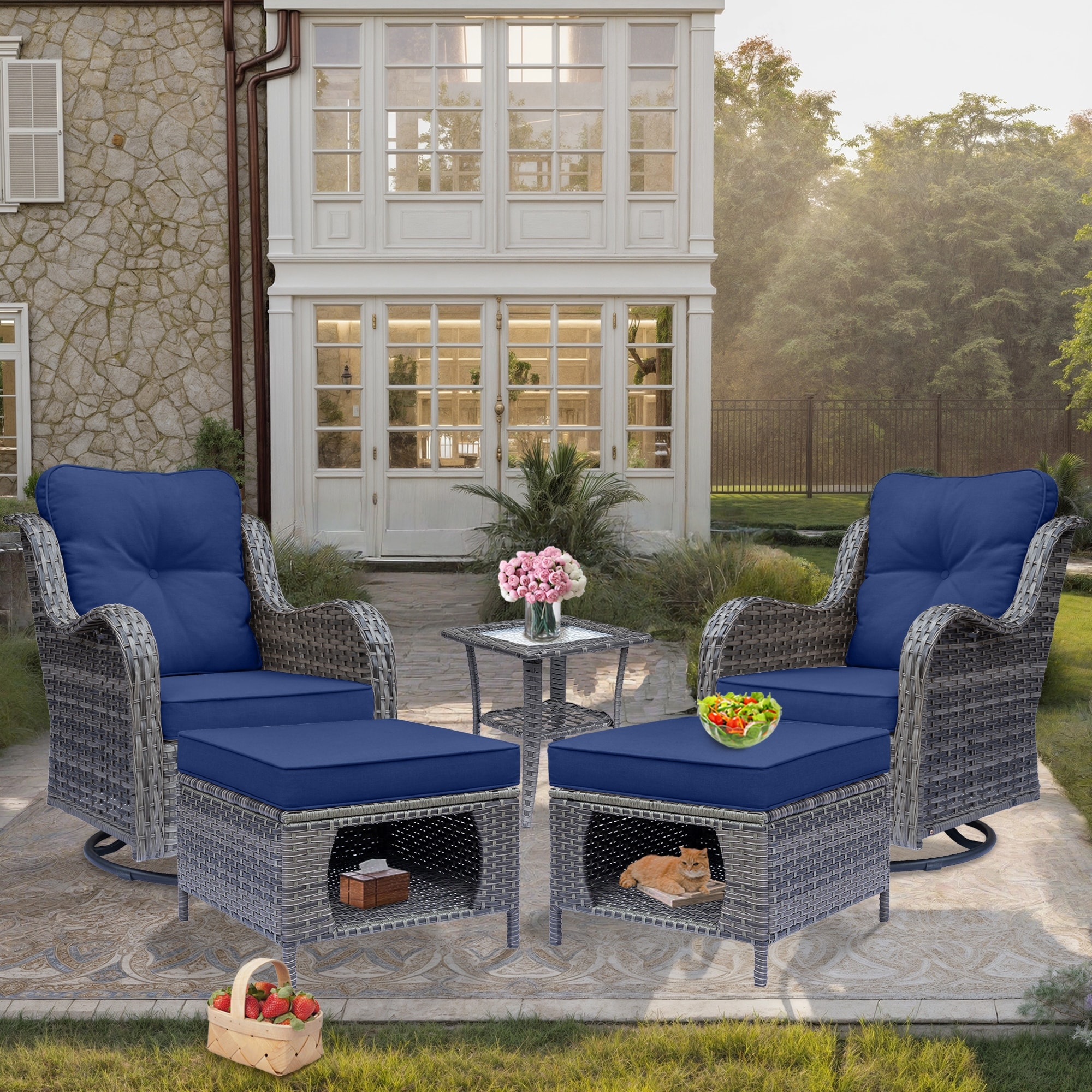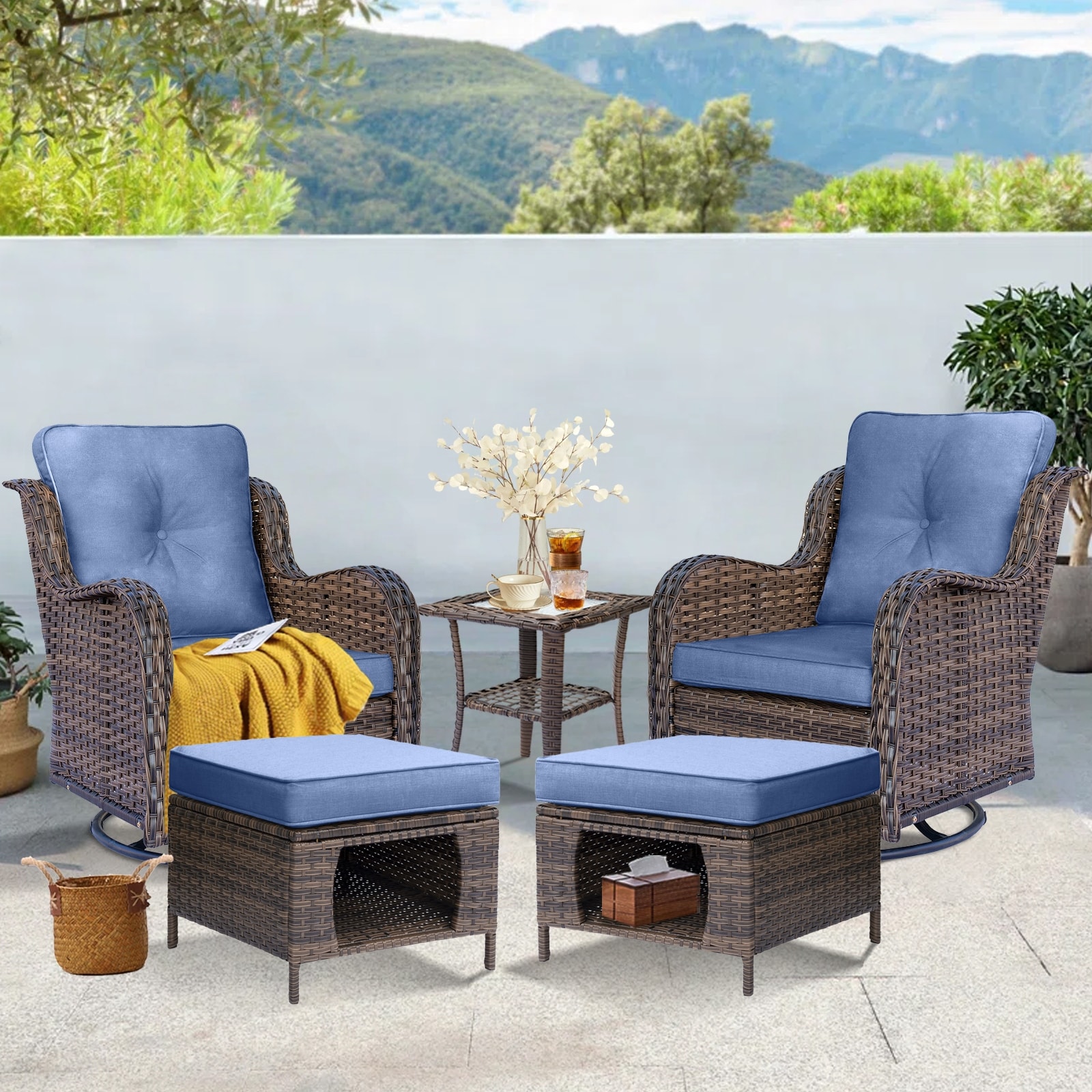 5 Piece Outdoor Wicker Patio Swivel Chair with Ottoman Conversation Set