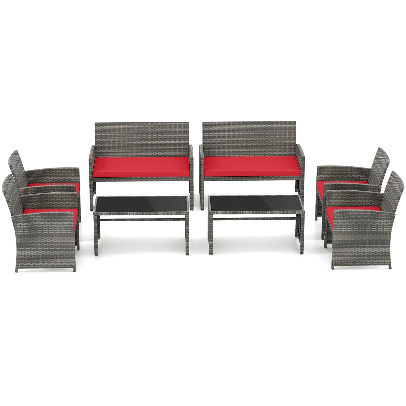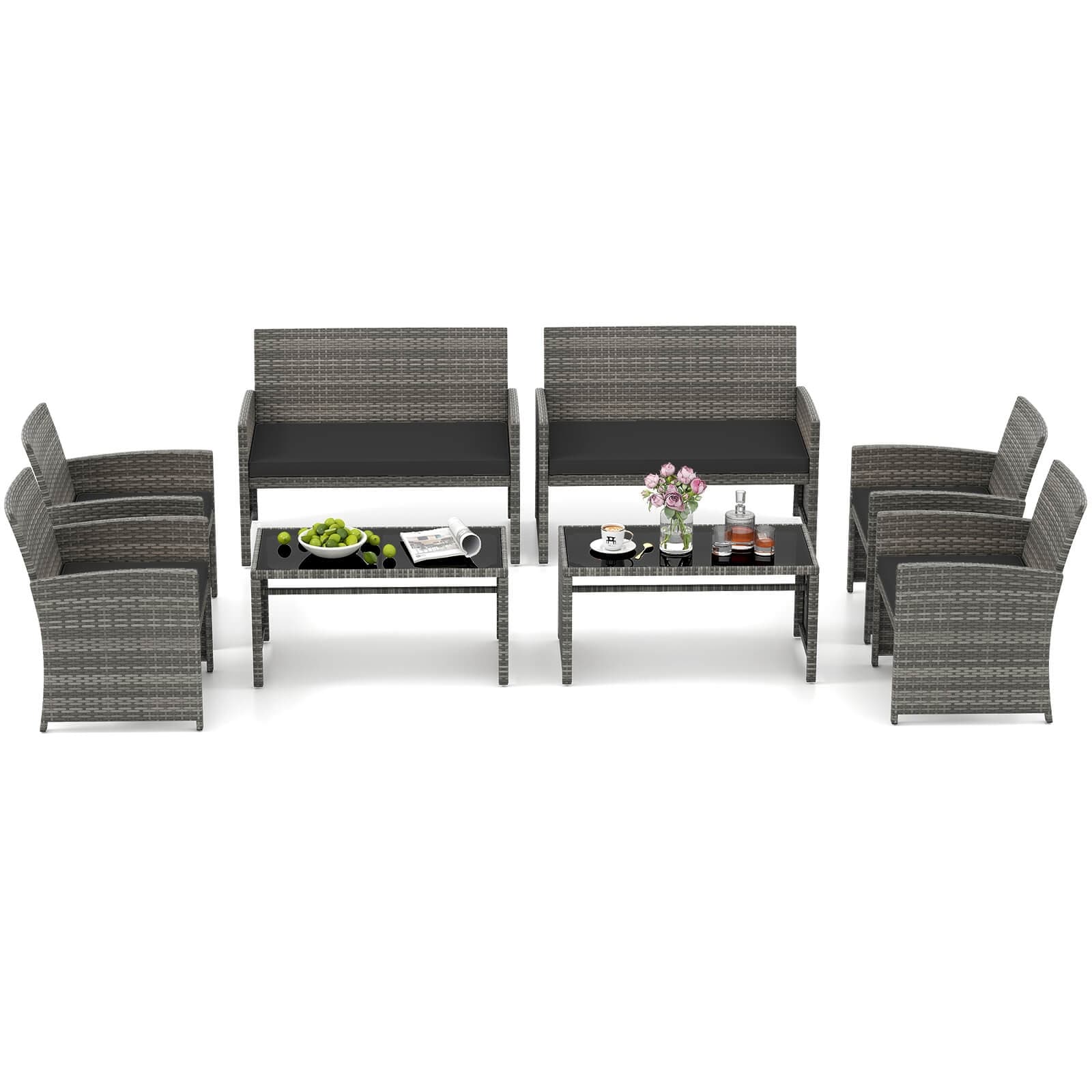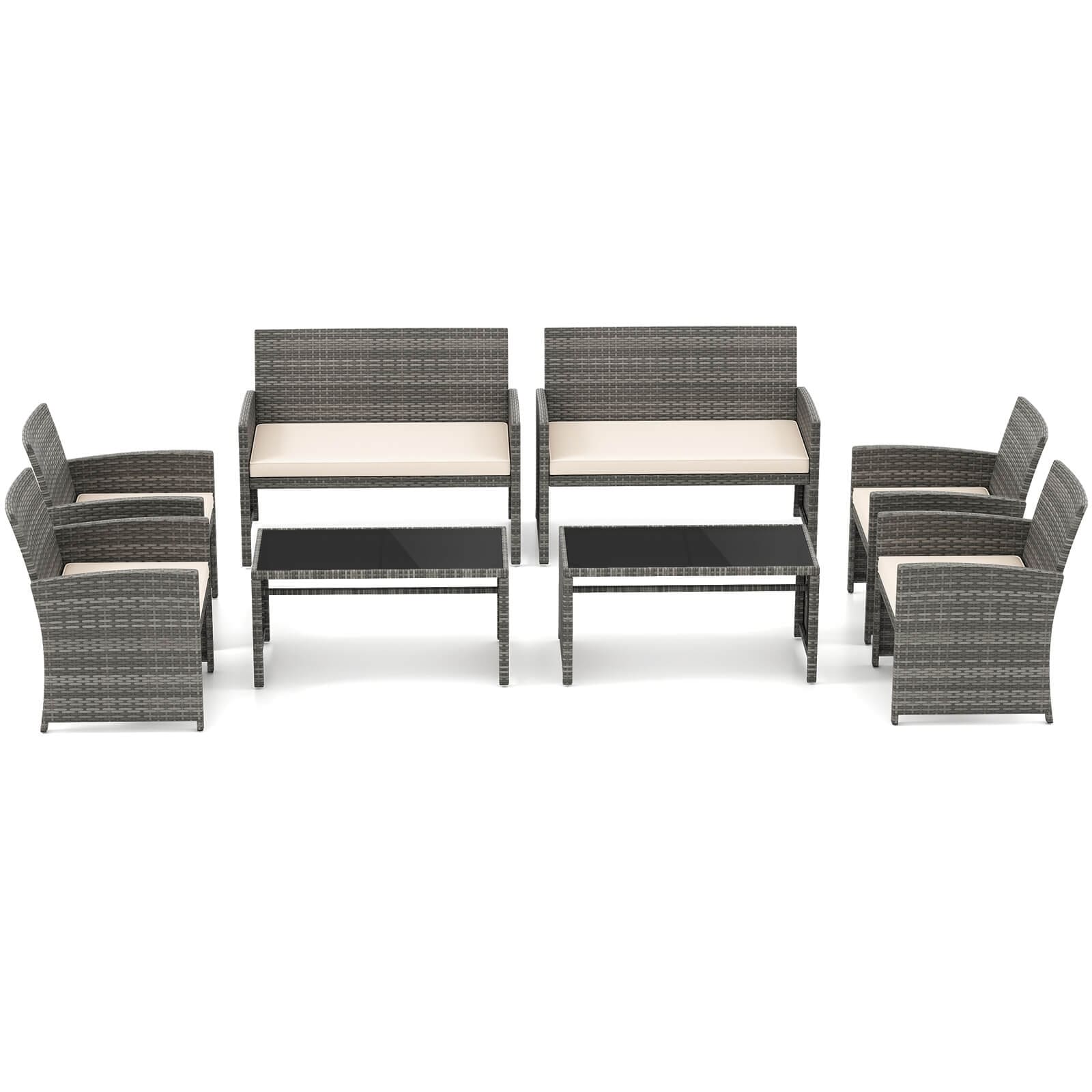 8 PCS Rattan Patio Conversation Set Outdoor Furniture Set w/ Table